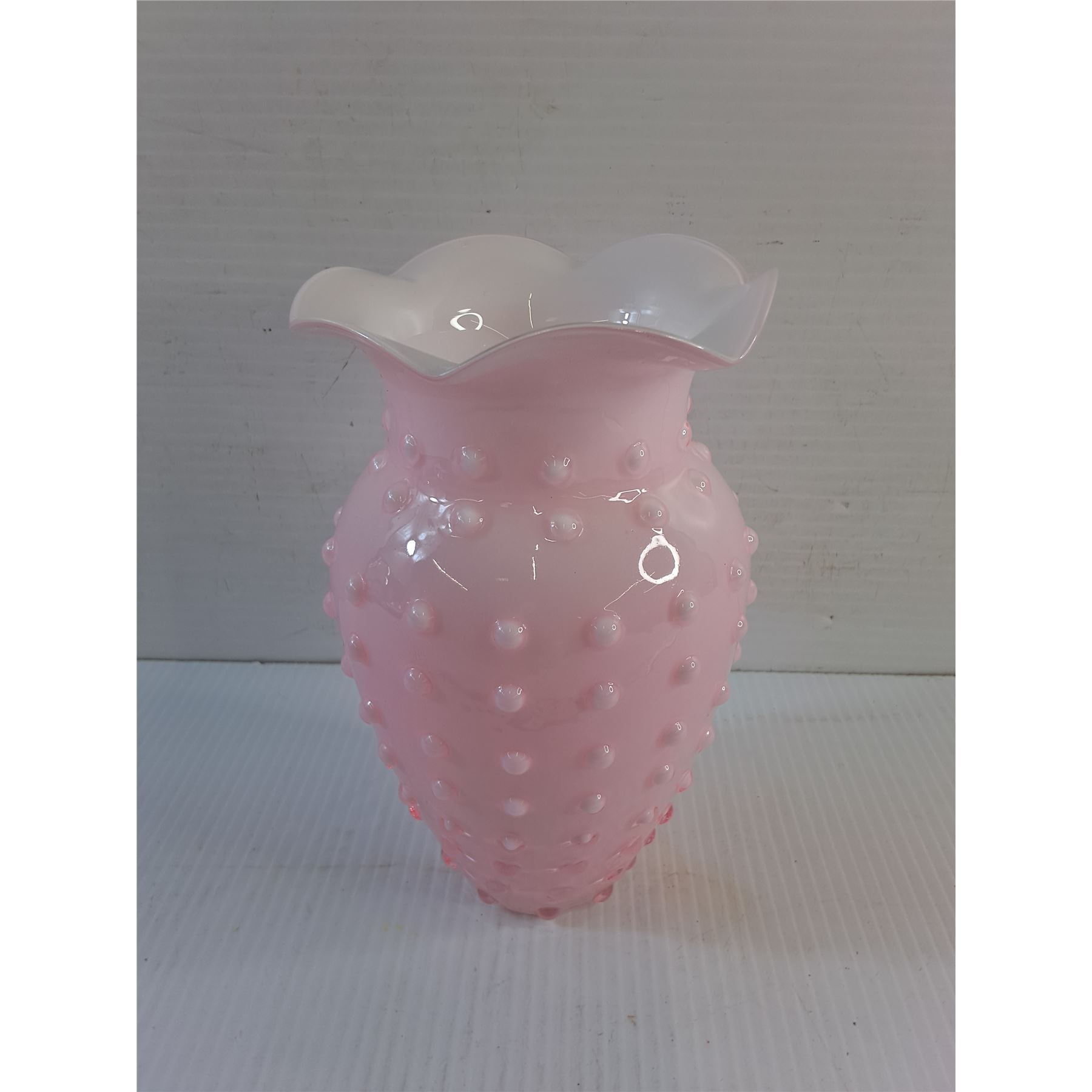 Pink Milk Glass Flower Vase 7'' x 4 1/2''