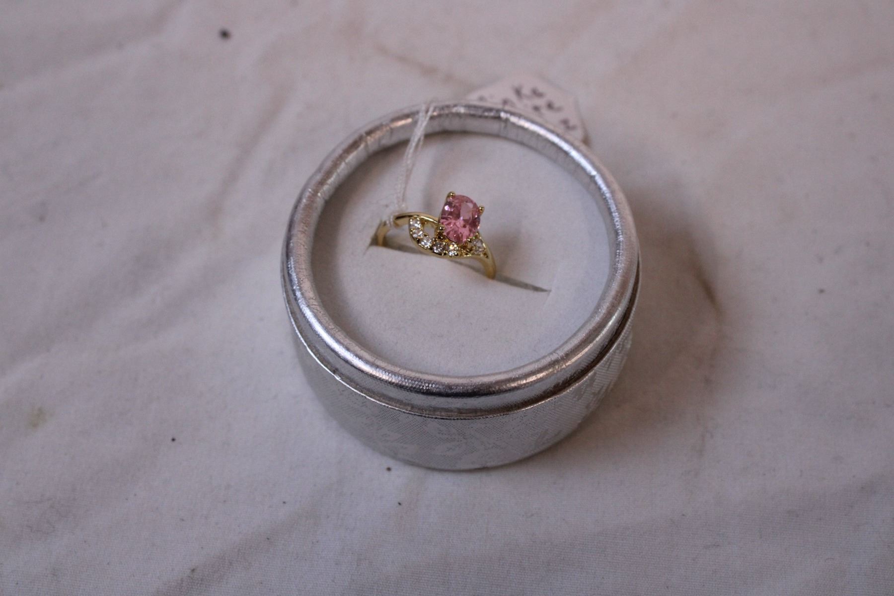 Pink White Topaz 18k Gold Filled ring size ?