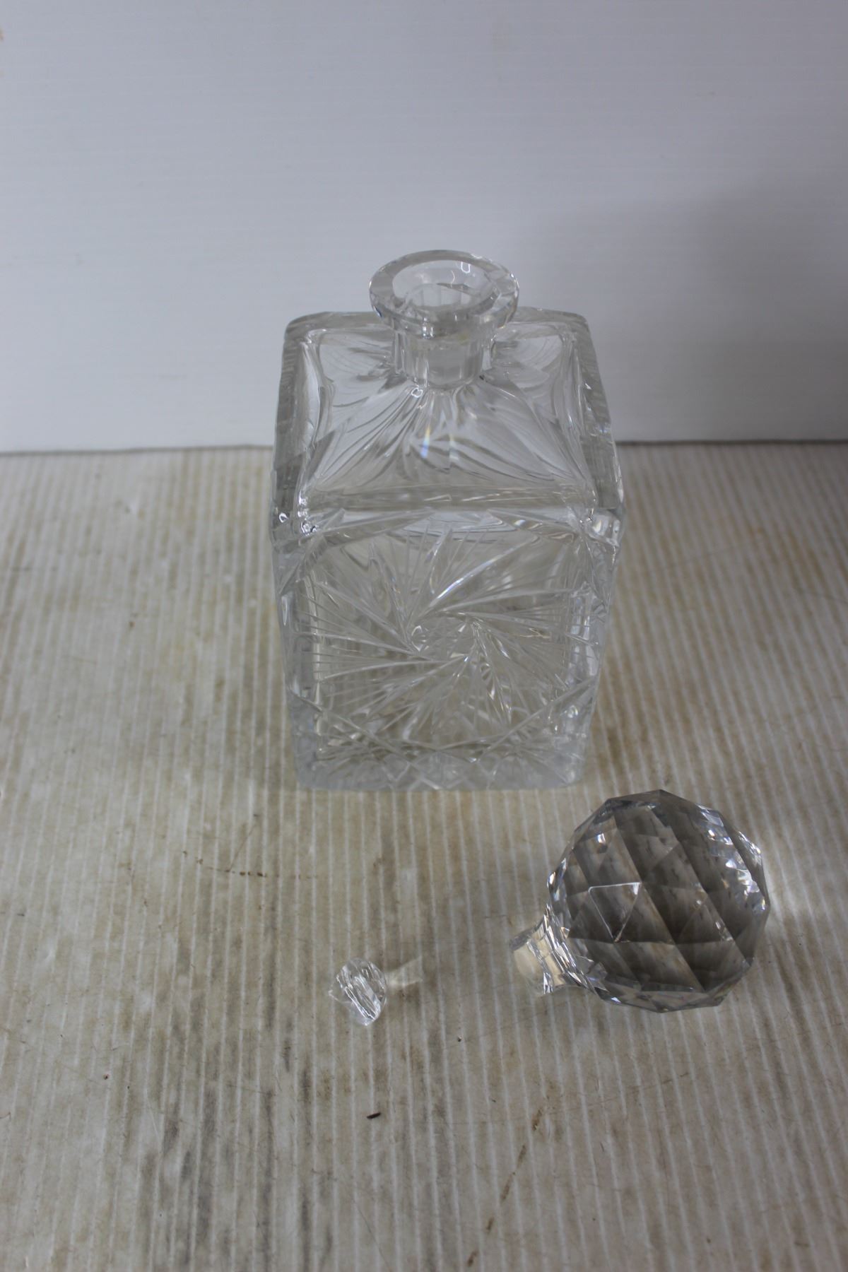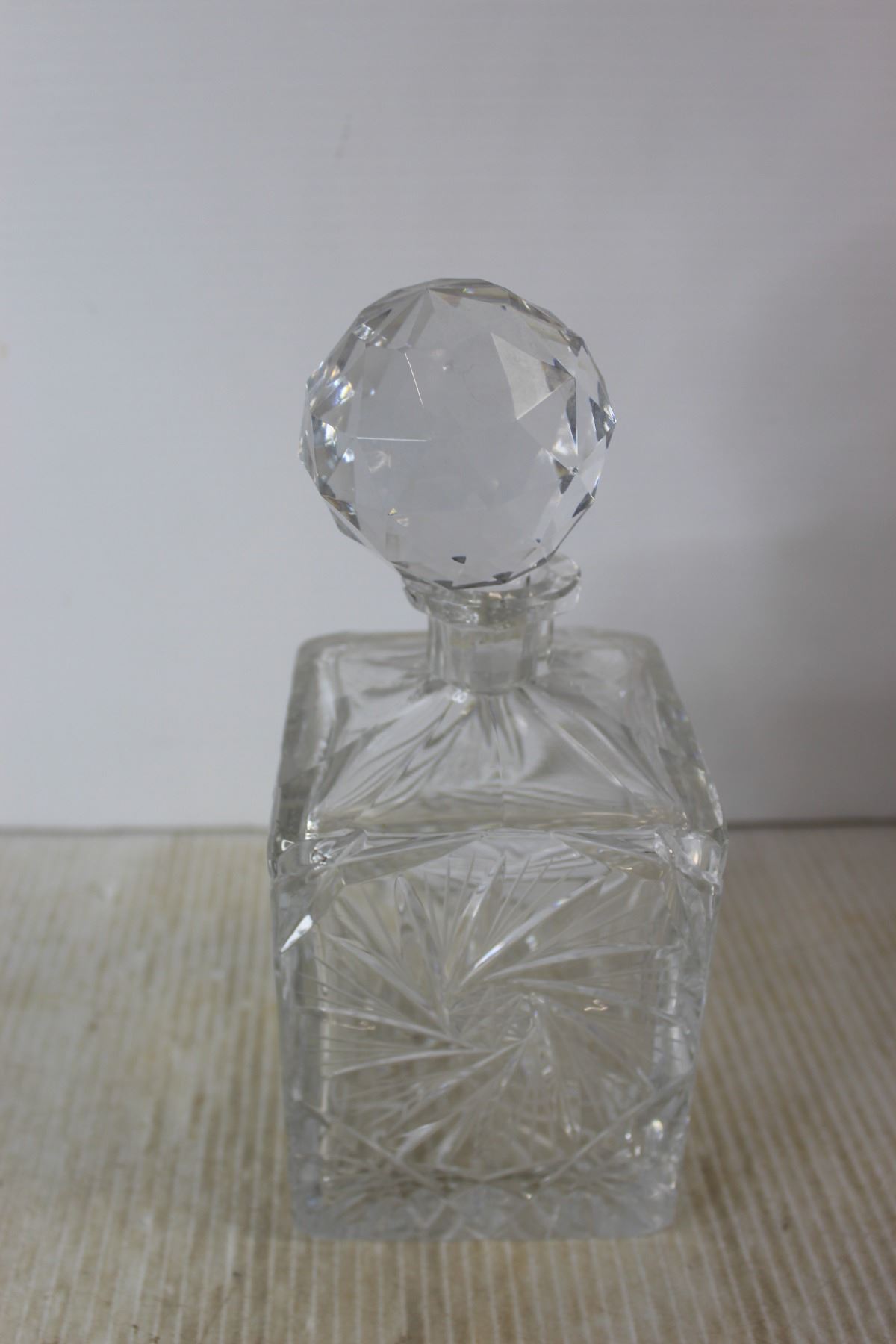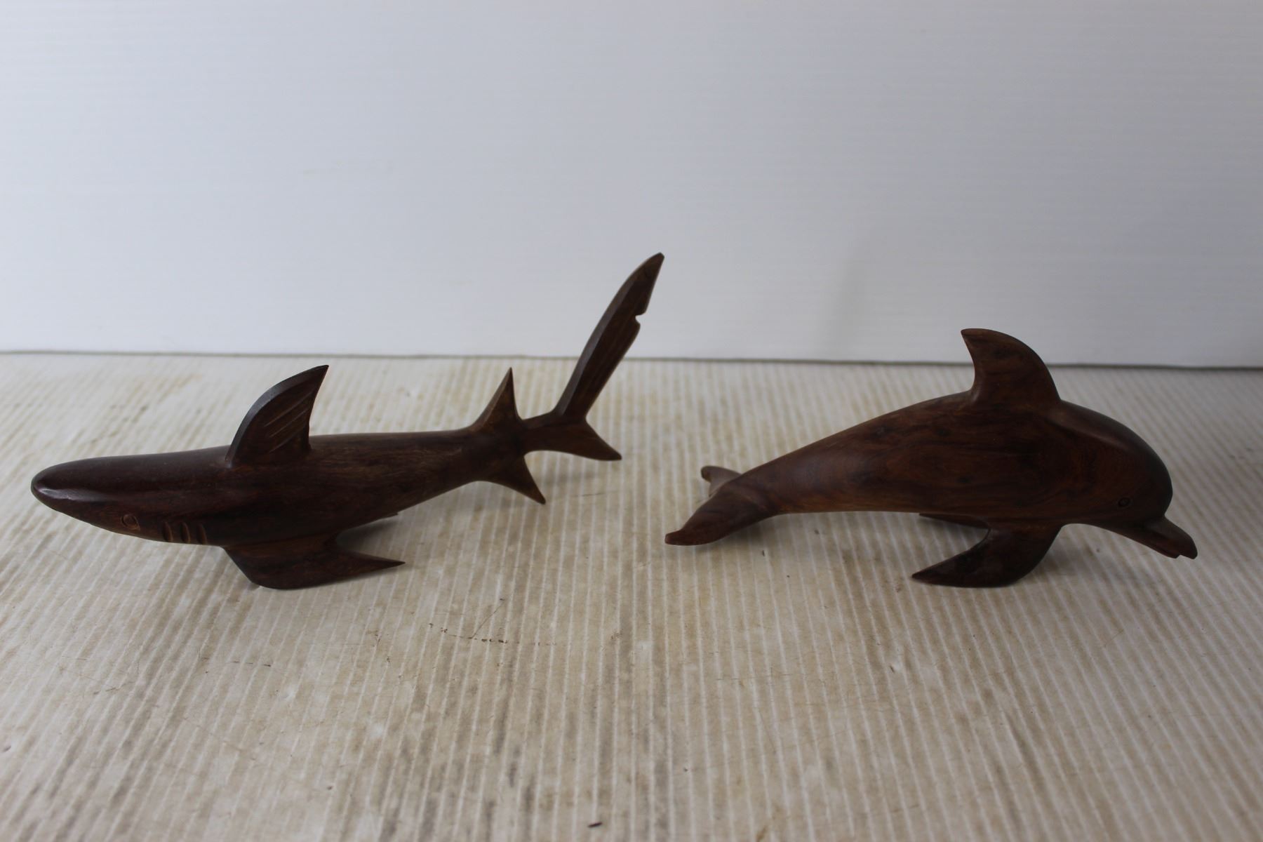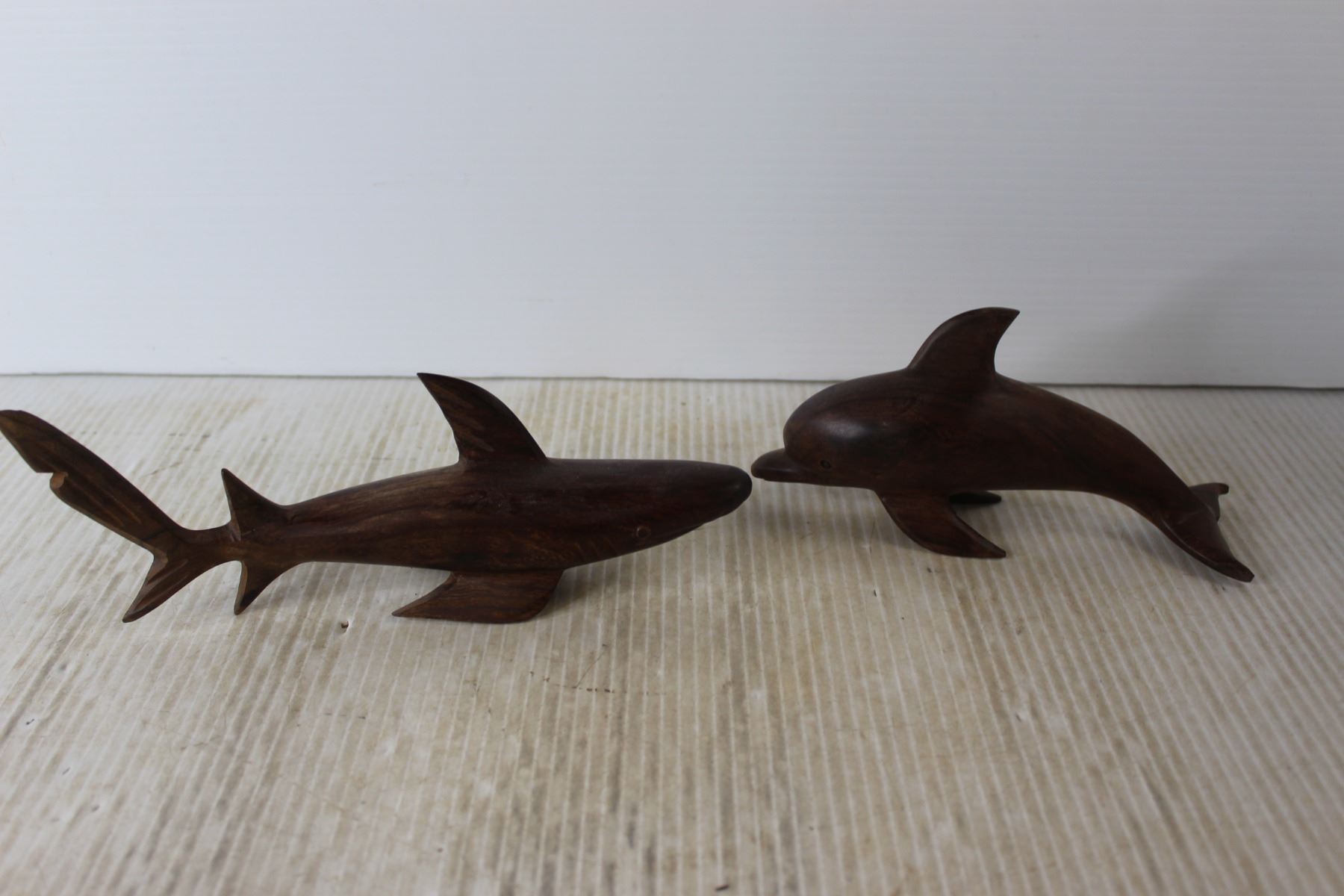 Pinwheel Crystal Decanter - Stopper is Broken, (3) Wood Fish Figures, (1) Wood Frog Figure