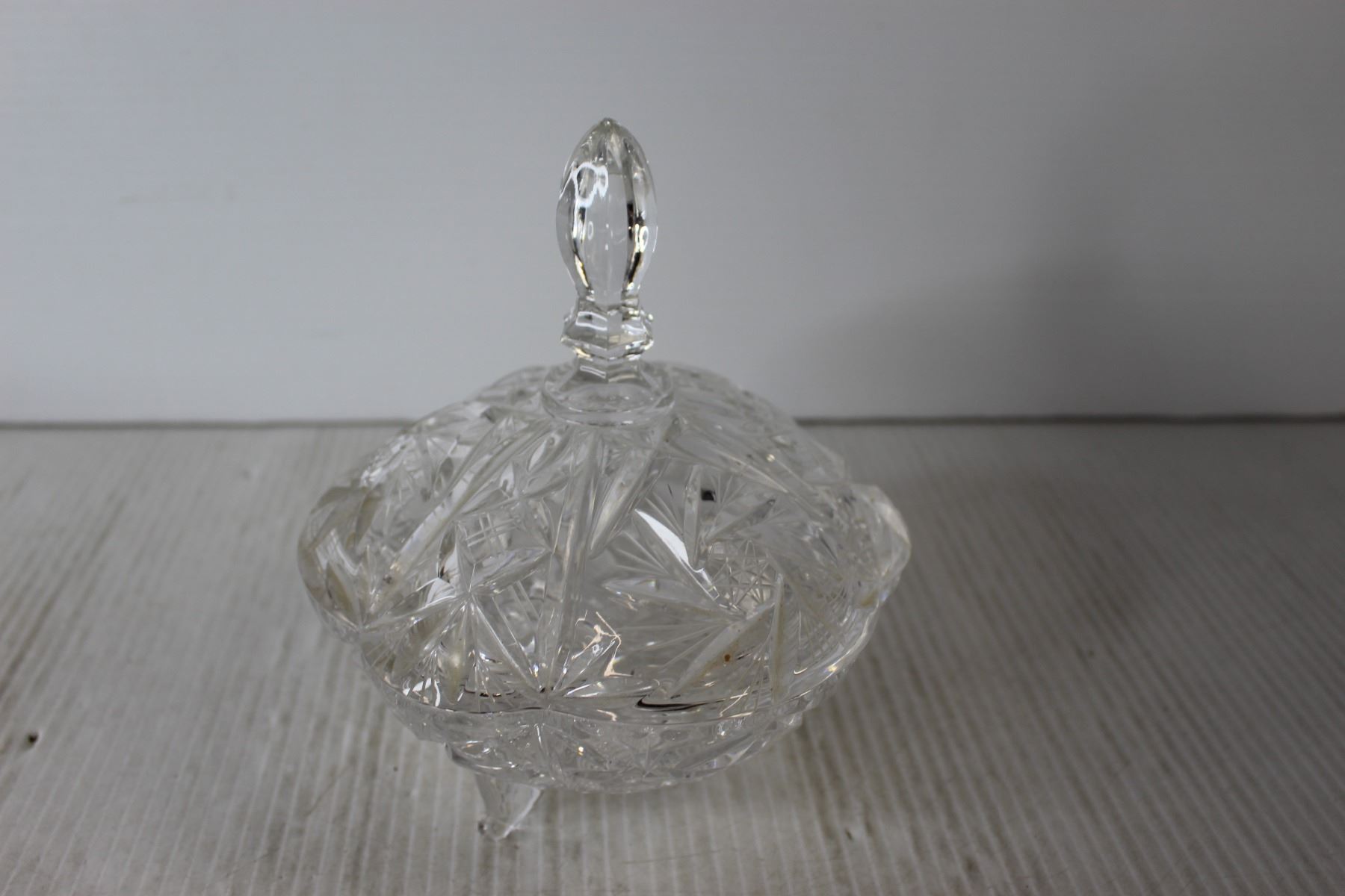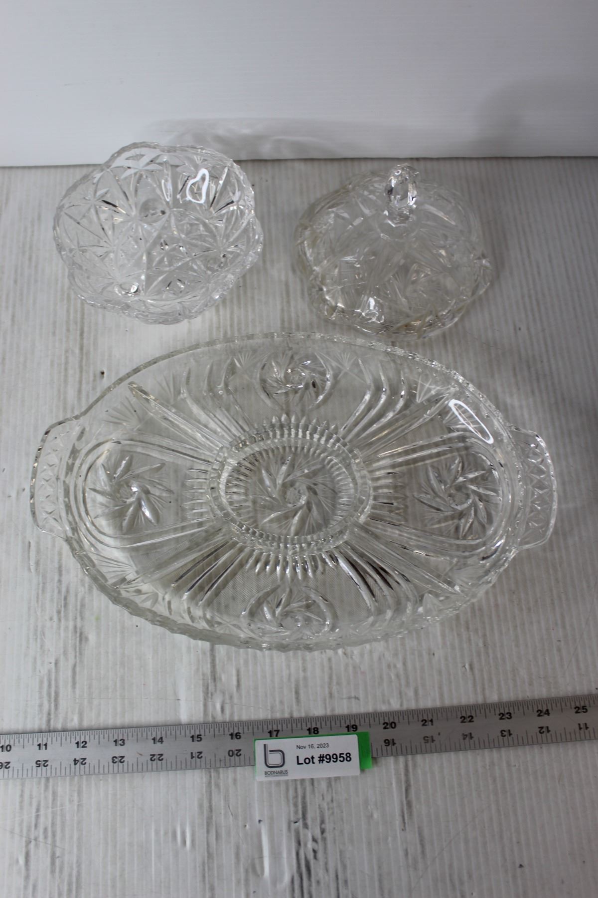 Pinwheel Crystal Divided Dish; Pinwheel Crystal Footed Candy Bowl With Lid
