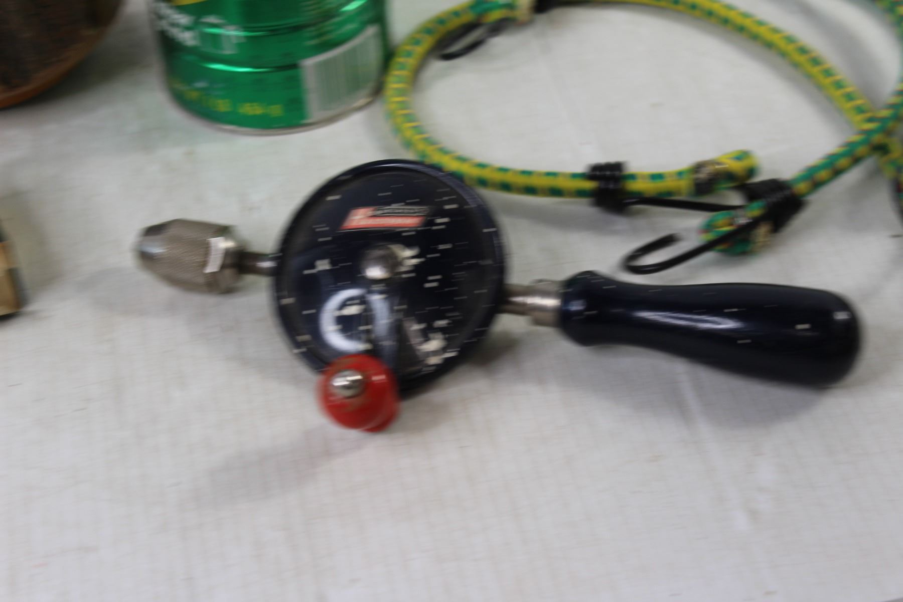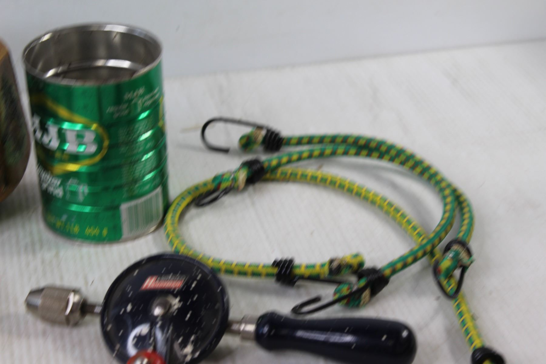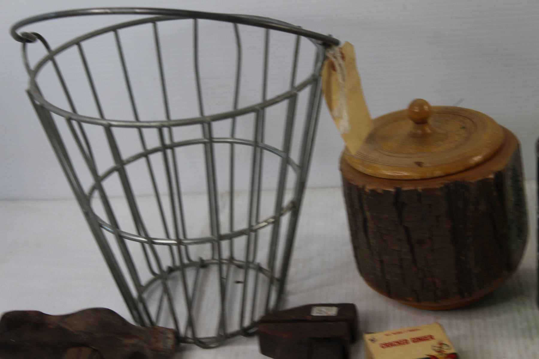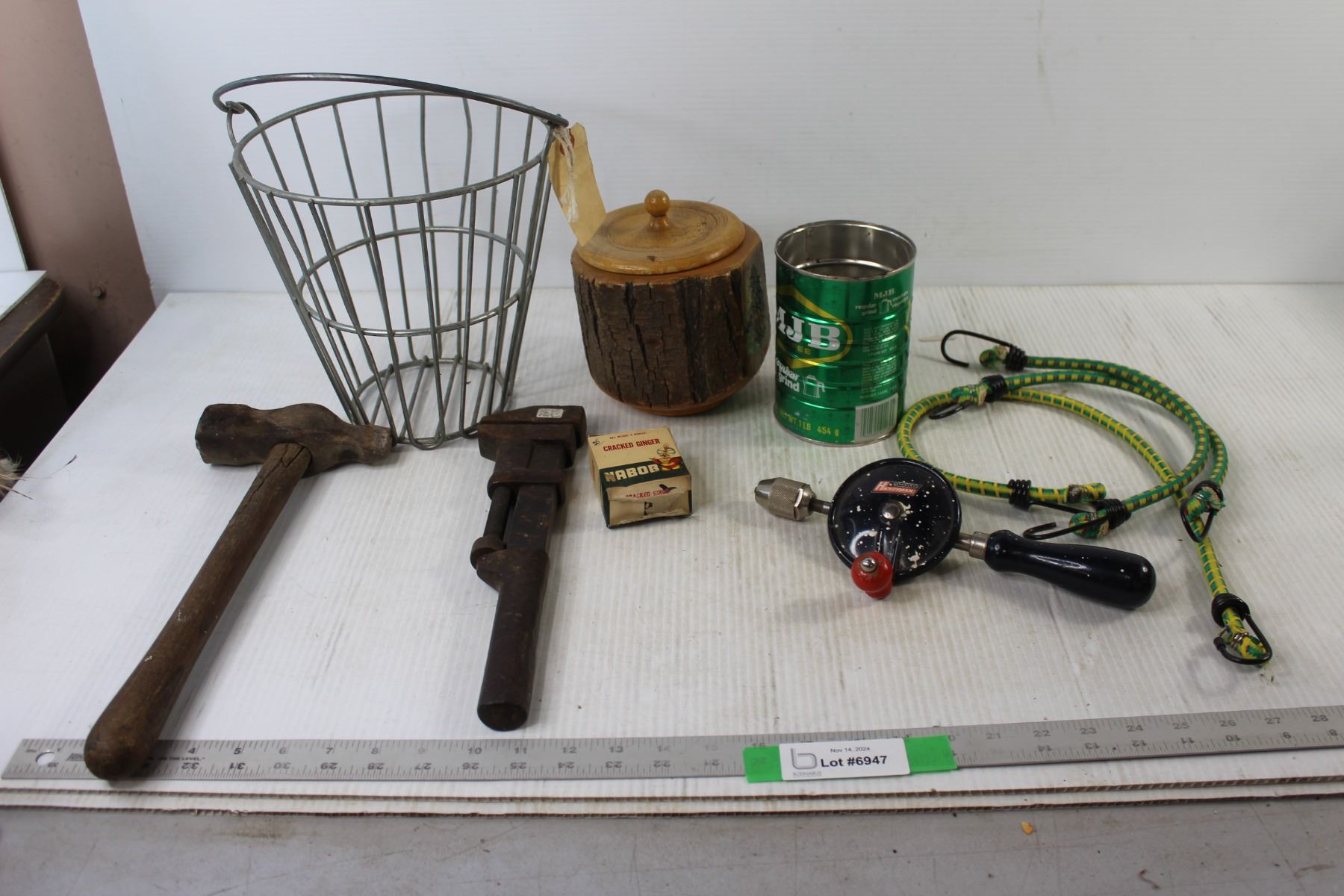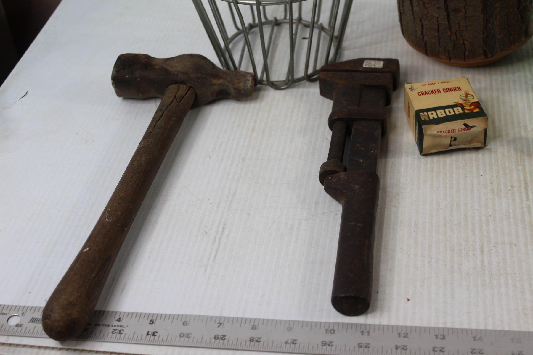 Pipe Wrench, Hammer, (3) Bungee Cords, Gold Ball Basket, Cracked Ginger