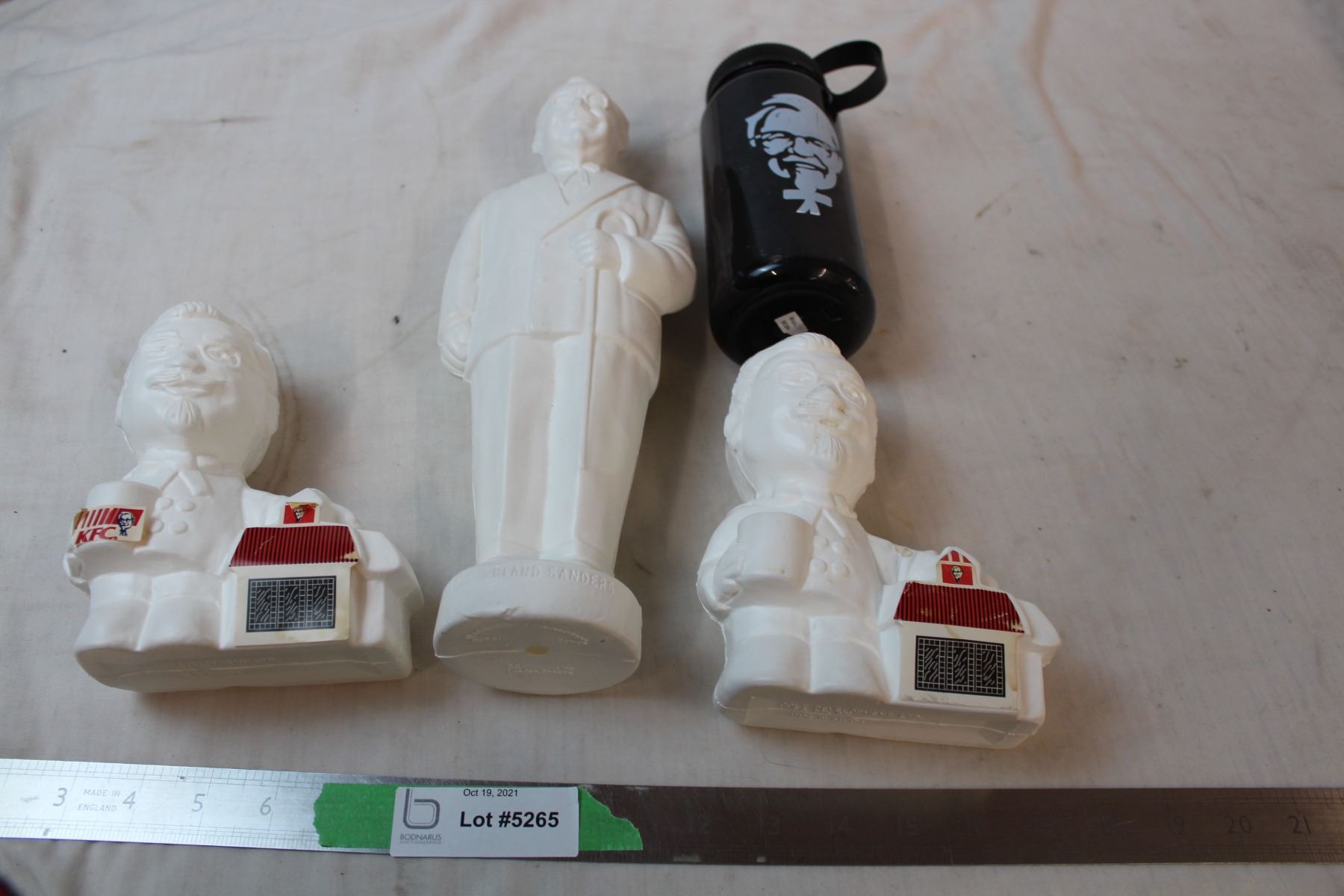 Plastic Col. Sanders coin banks & water bottle