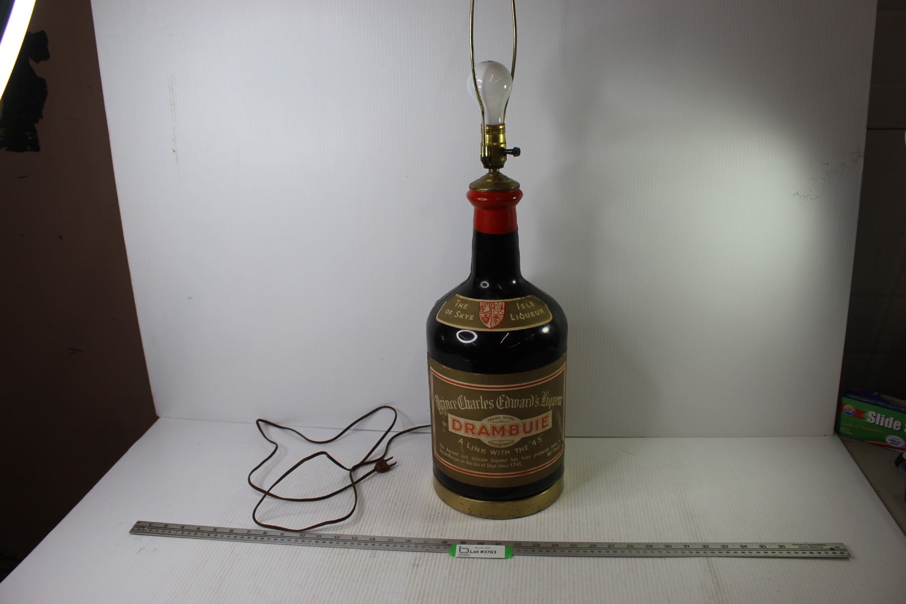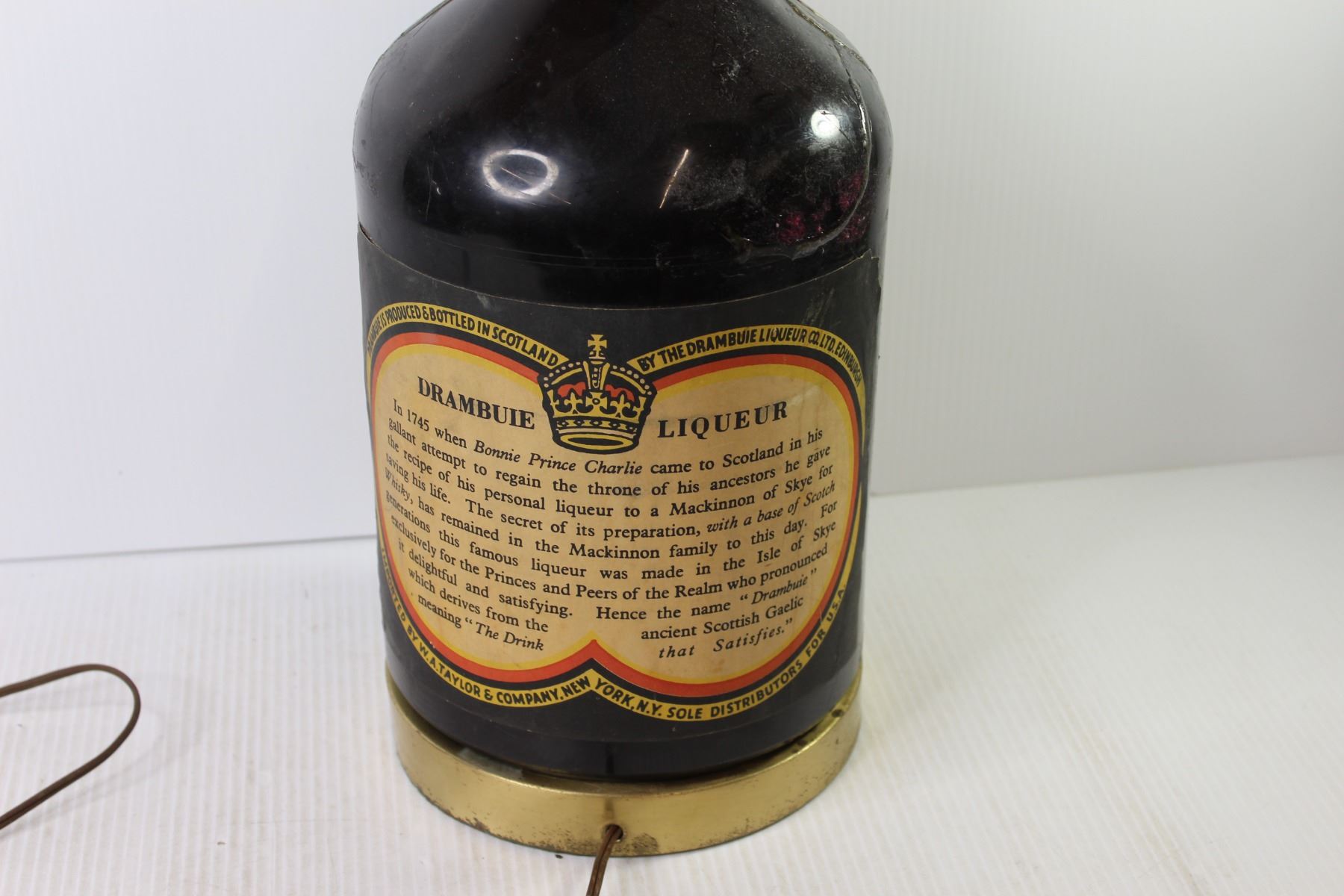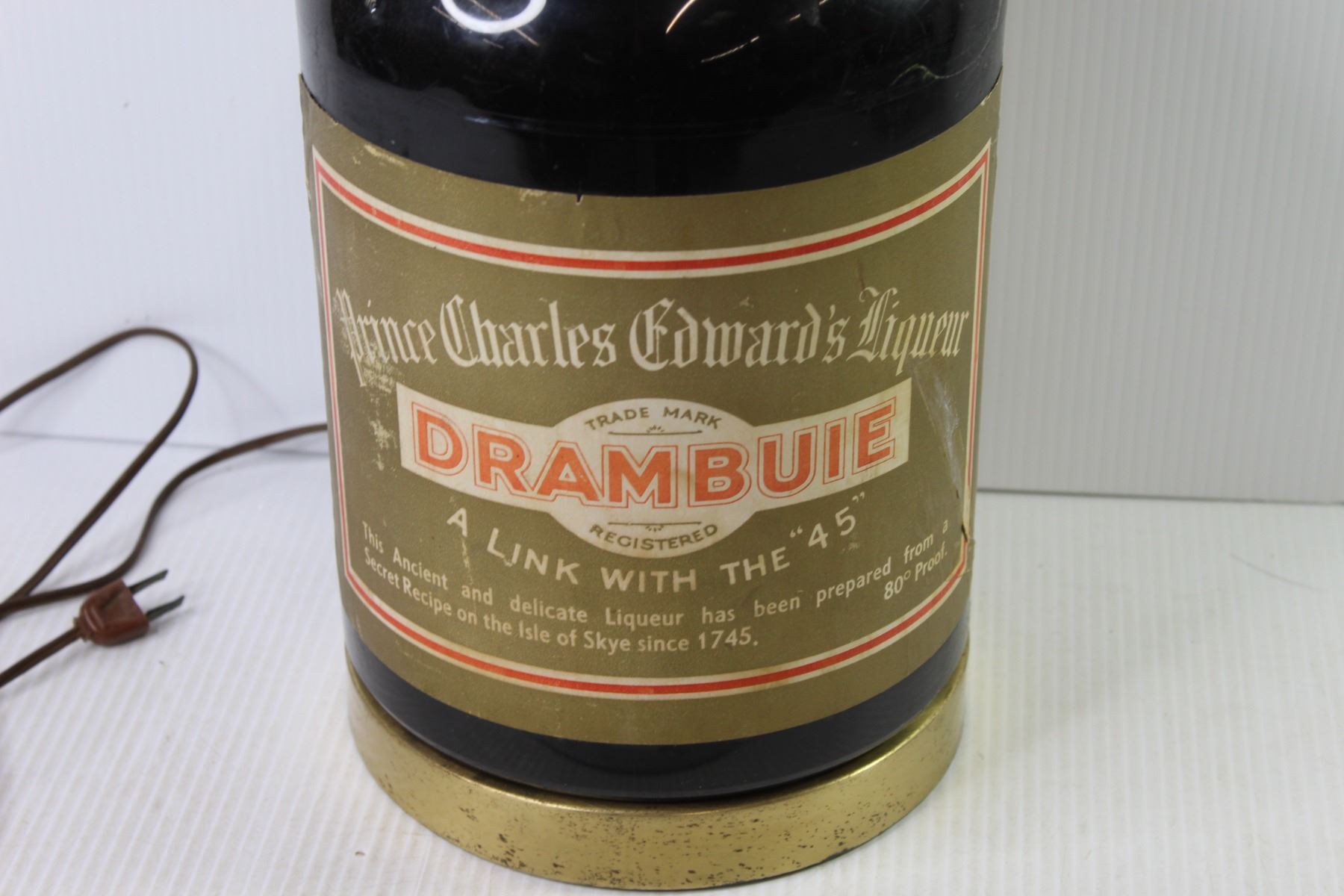 Plastic Drambuie Lamp (working -cracked & has repairs)