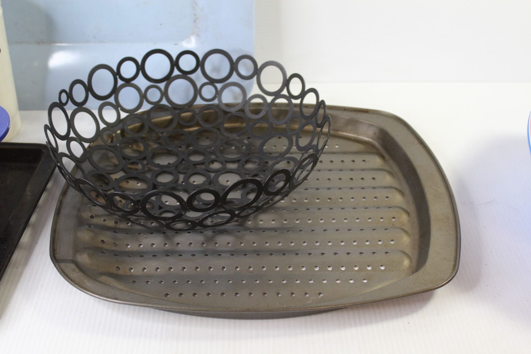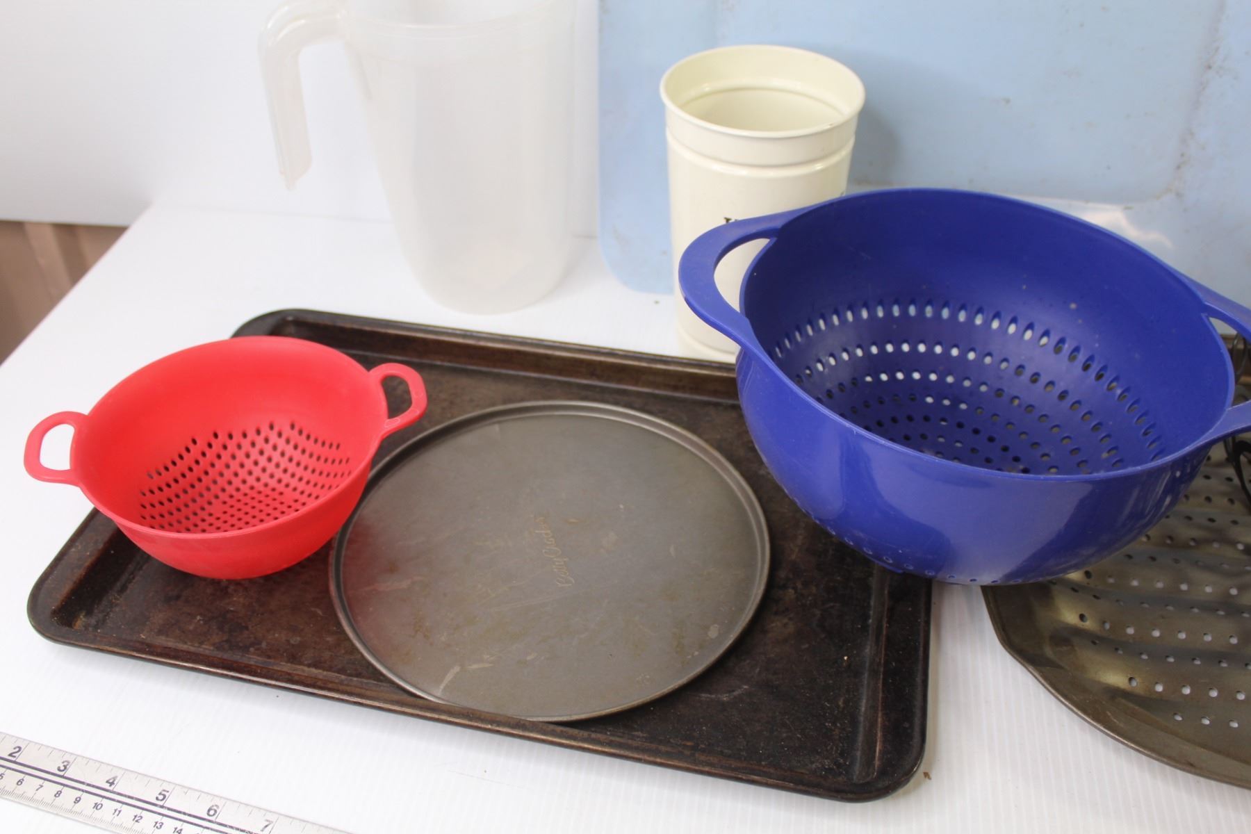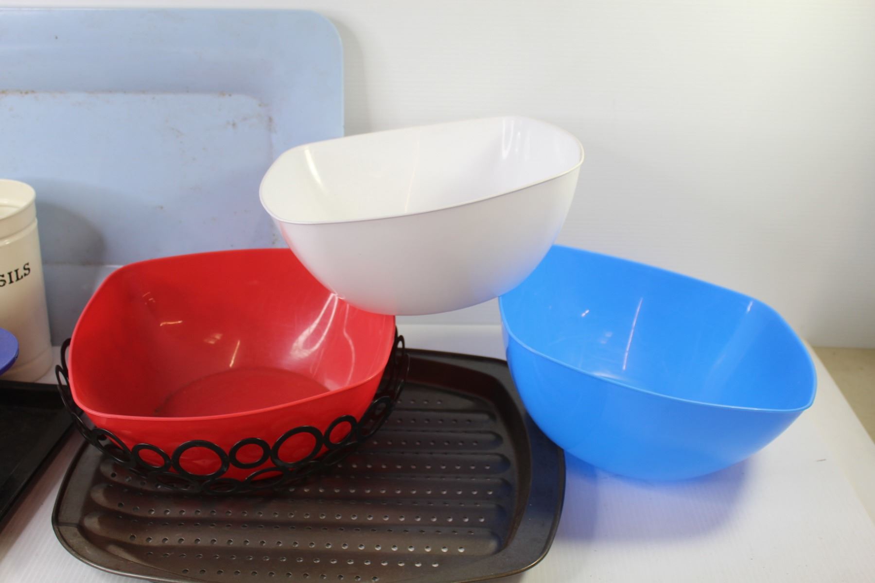 Plastic Juicer - Roasting Pans - Plastic Bowls - Plastic Strainers - Blue Tray - Utensil Holder