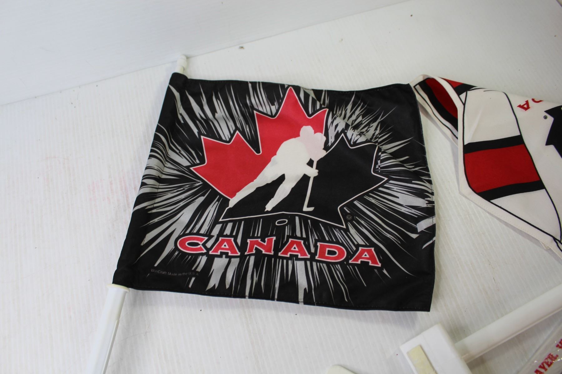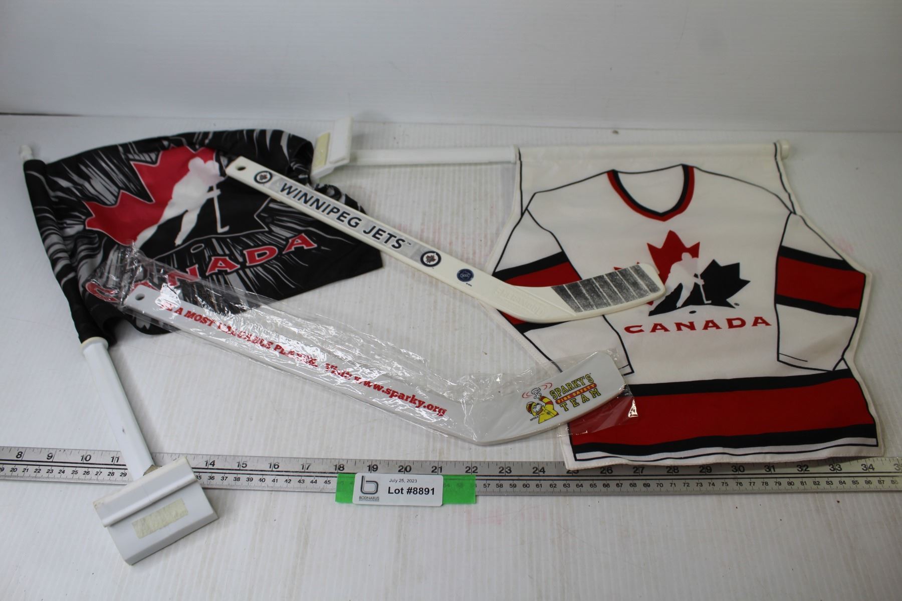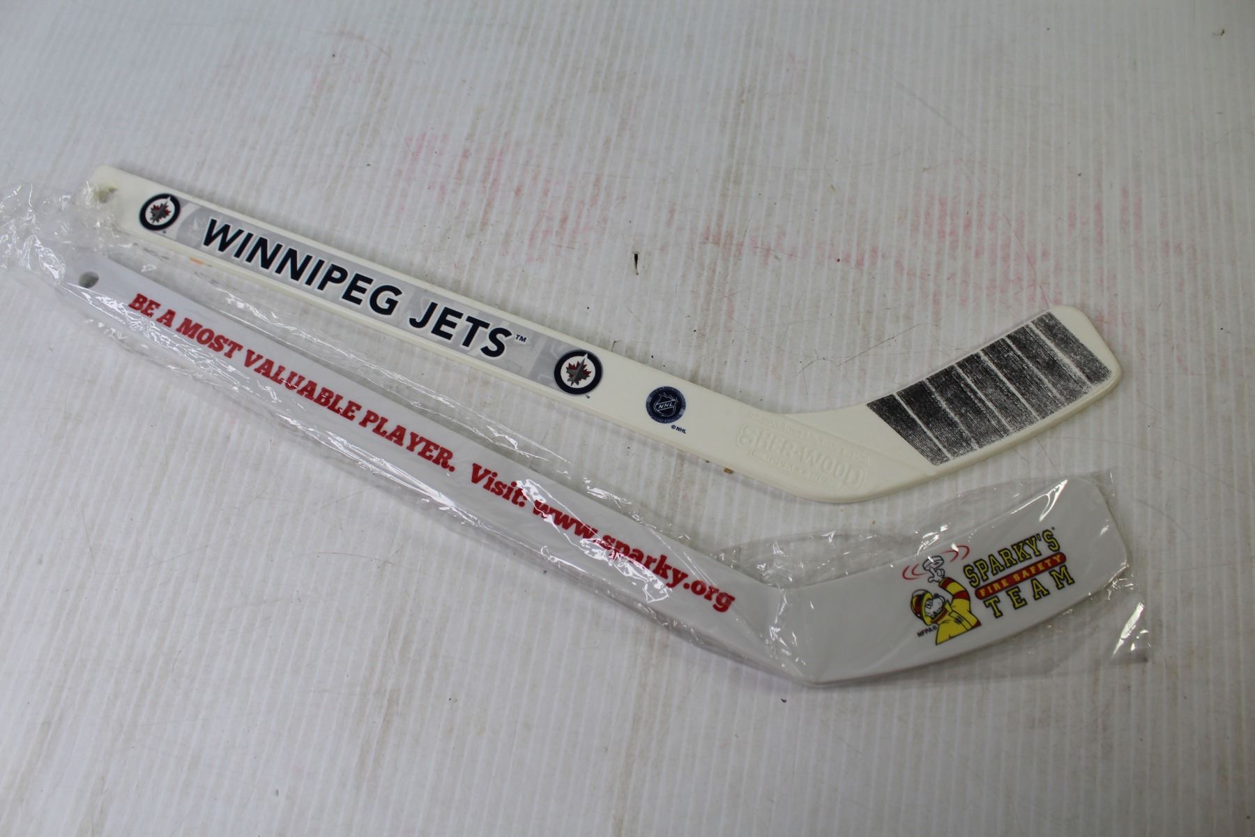Plastic Sparky & Winnipeg Jets Hockey Sticks - (2) Canada Window Flags
