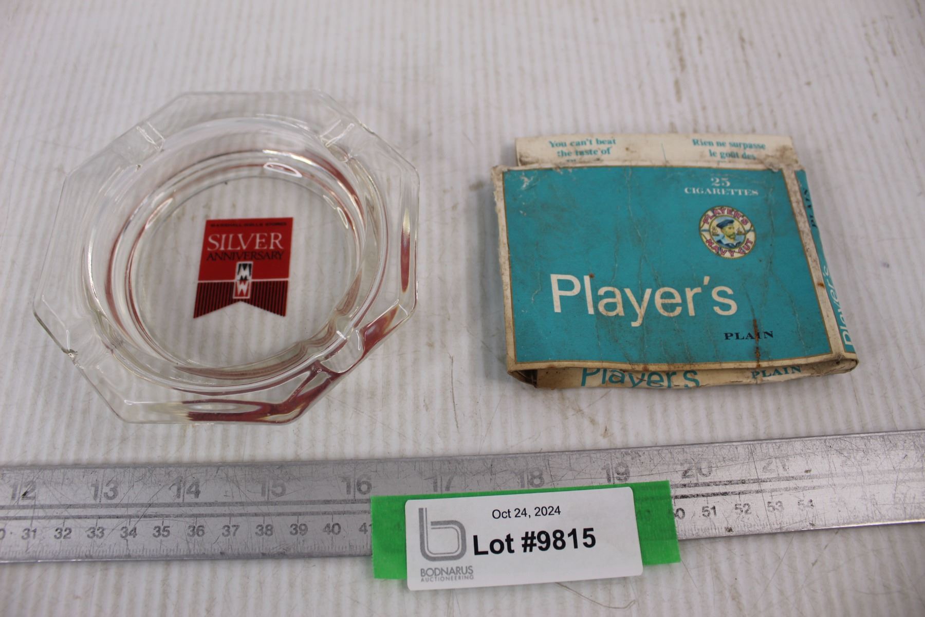 Players Cigarette Box - Damaged, Marshall Wells Stores Silver Anniversary Ashtray