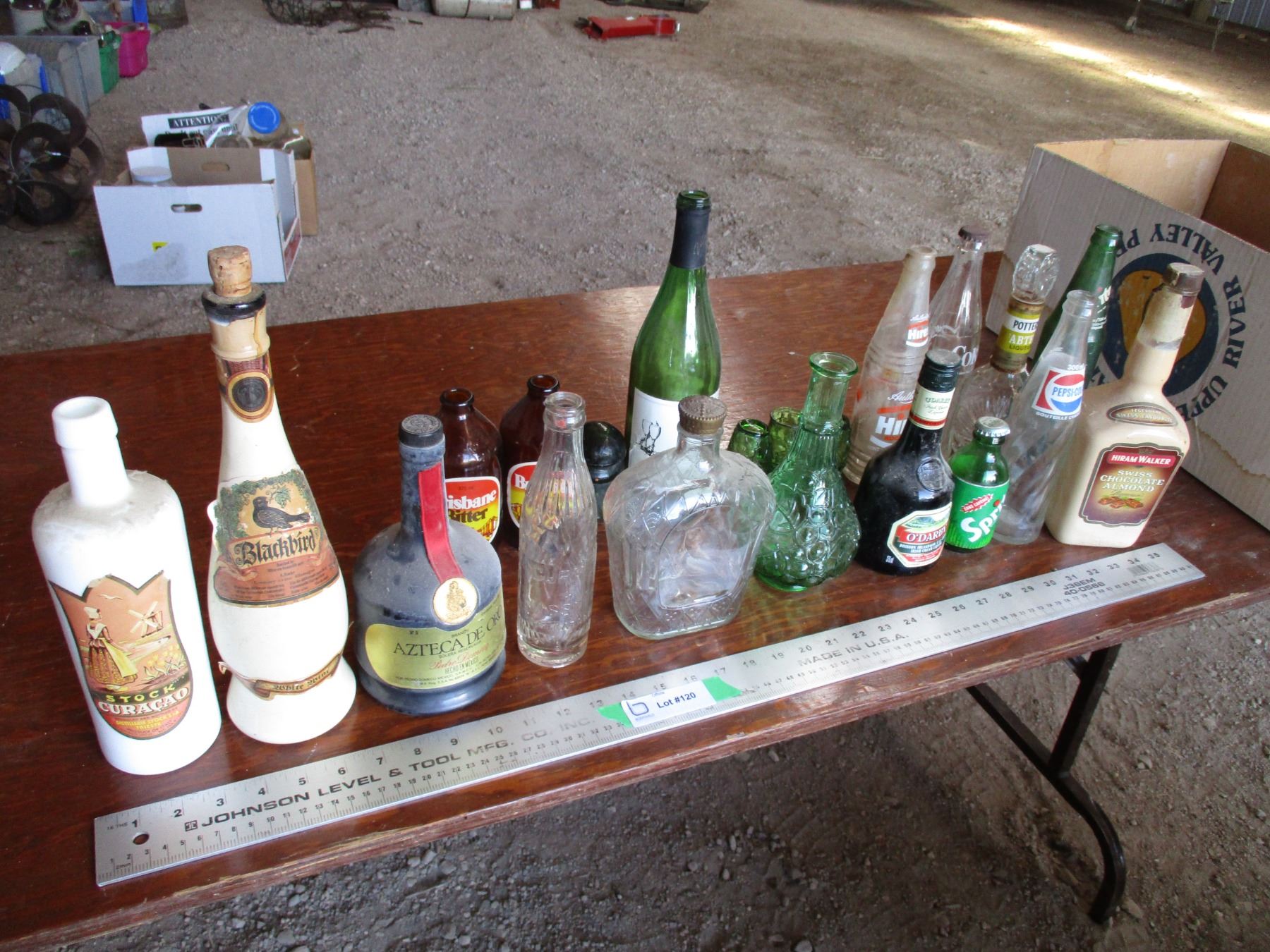 Pop bottles, currie + hassett Saskatoon, misc whiskey bottles