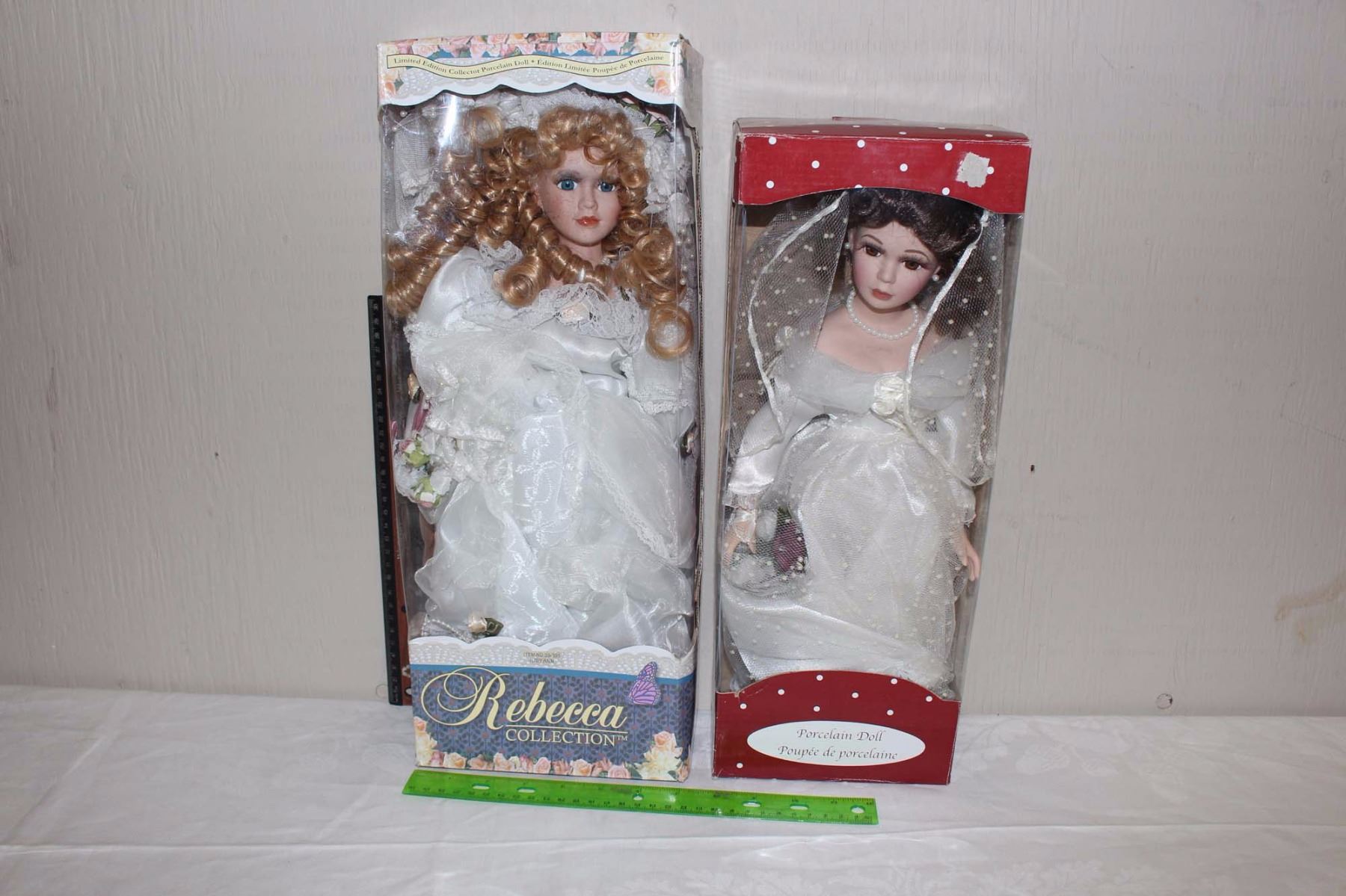 Porcelain Dolls (2) Limited Edition Rebecca 18” Porcelain Collectors Doll w/Stand & 18” Porcelain Co
