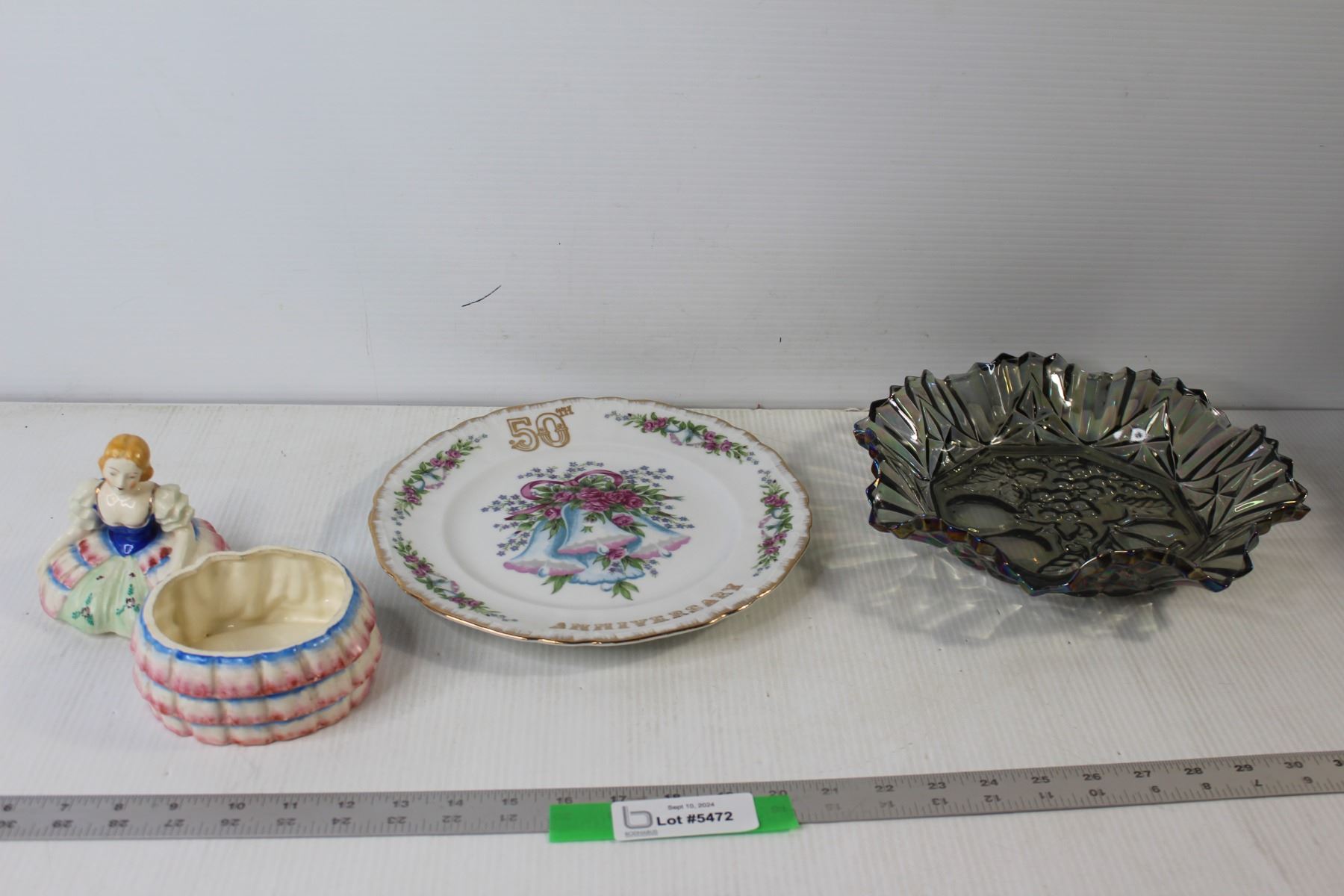Porcelain Girl Container, 50th Anniversary Plate, Glass Dish