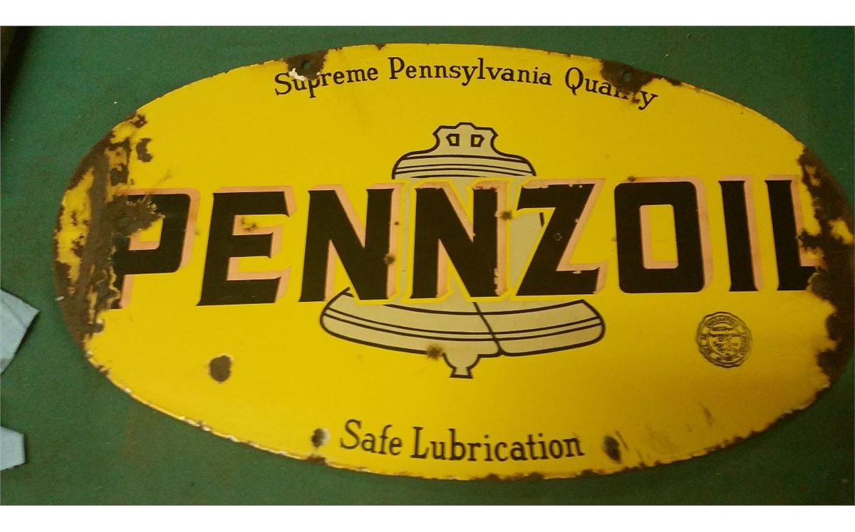 Porcelin Double Sided Penzoil Sign