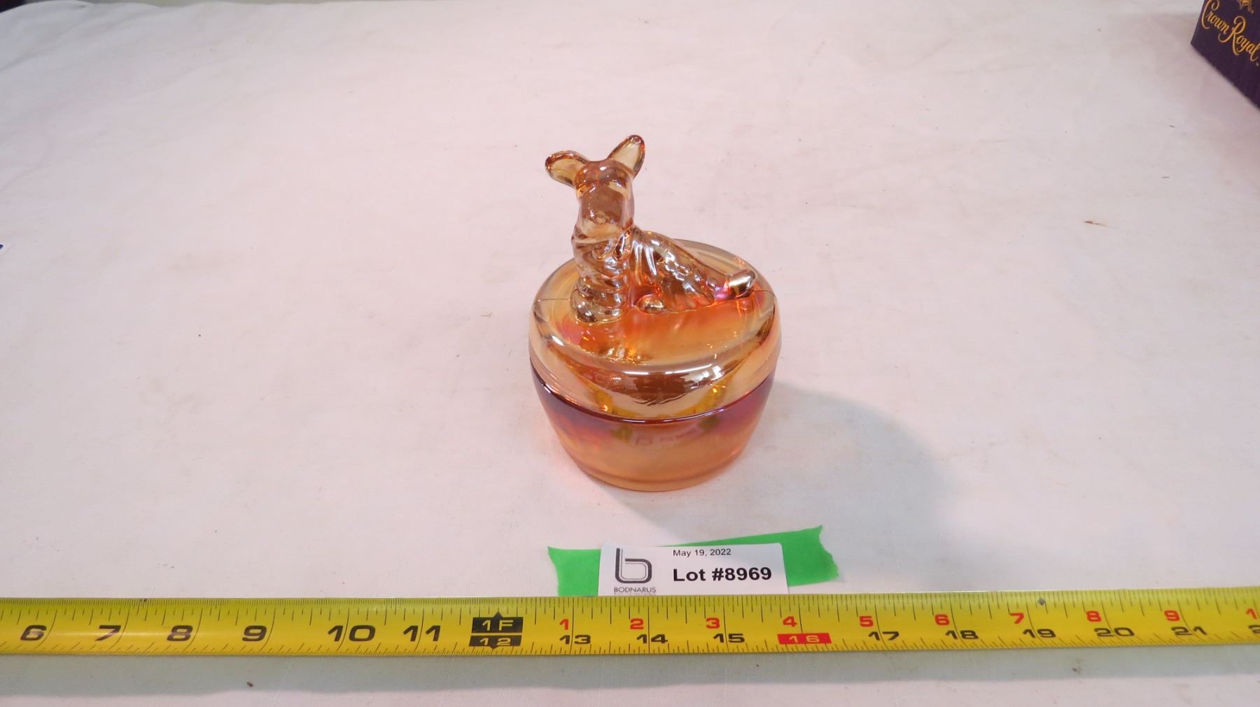 Powder Jar carnival glass terrier