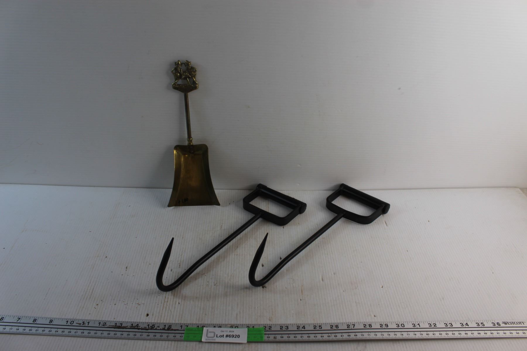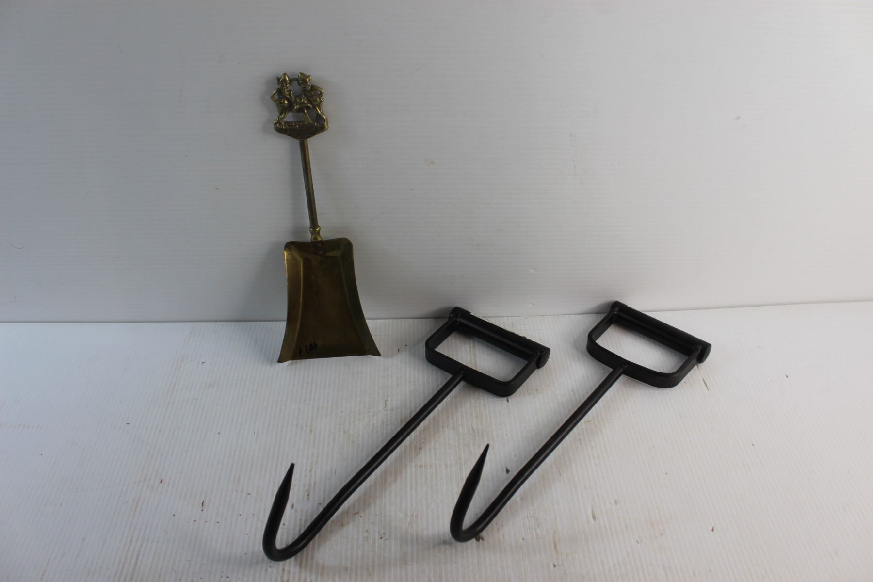 Power Fist Bale Hooks and Brass Fireplace Shovel