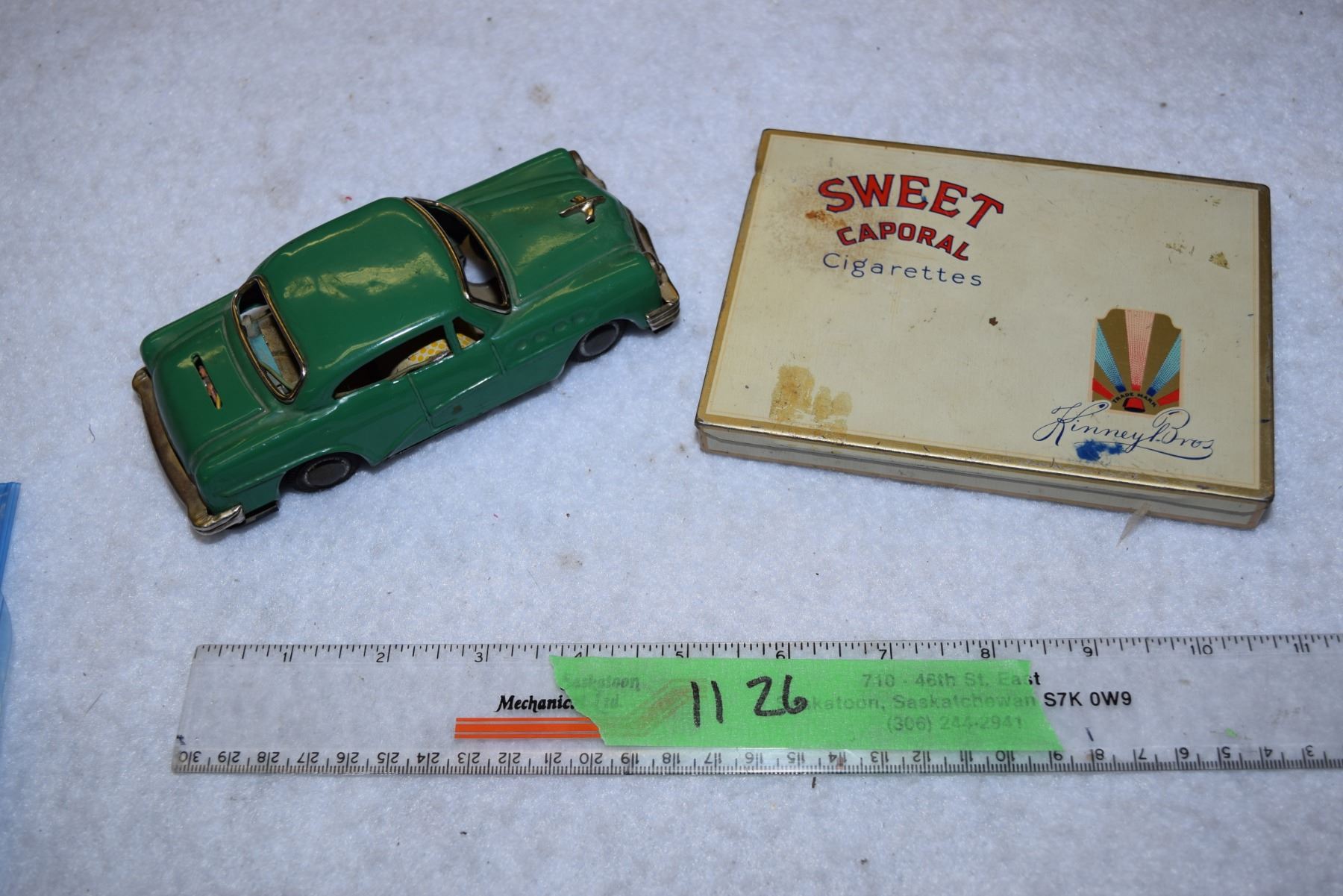 Pressed Steel Car 1950s Buick 2 Door and Sweet Caporal Cigarette Tin