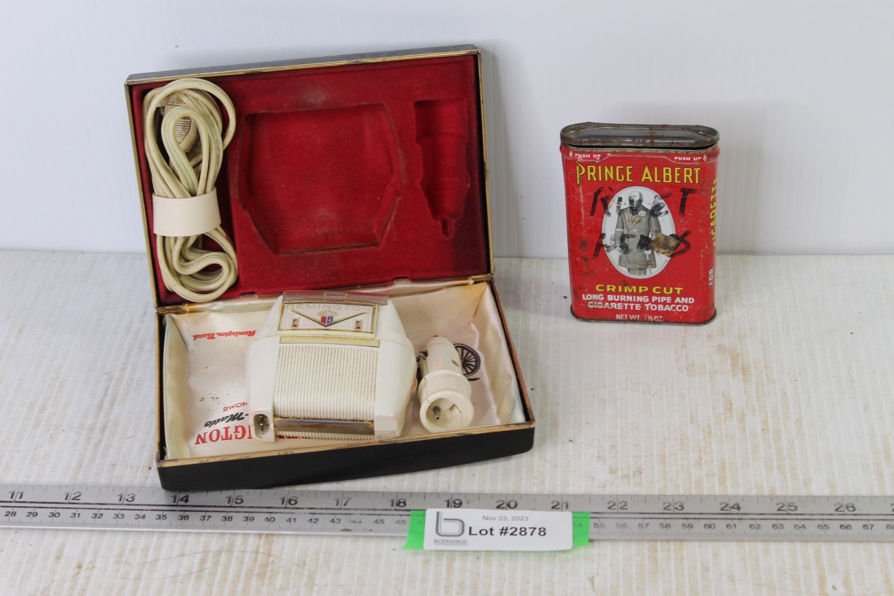 Prince Albert Tabacco Tin - Vintage Remington Shaver in Case