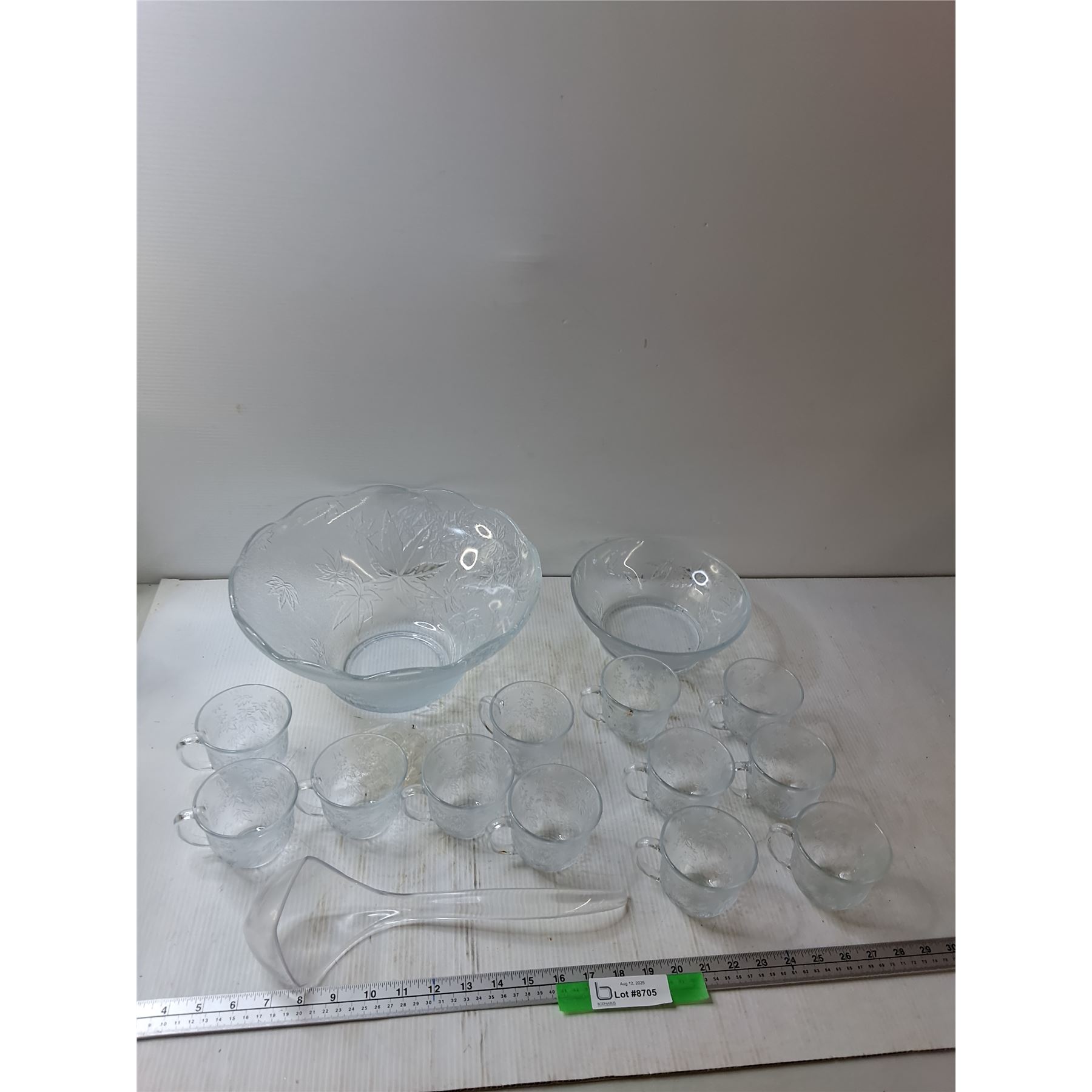 Punch Bowl, Base, (12) Cups, Hooks, Ladle - As Is - PICK UP