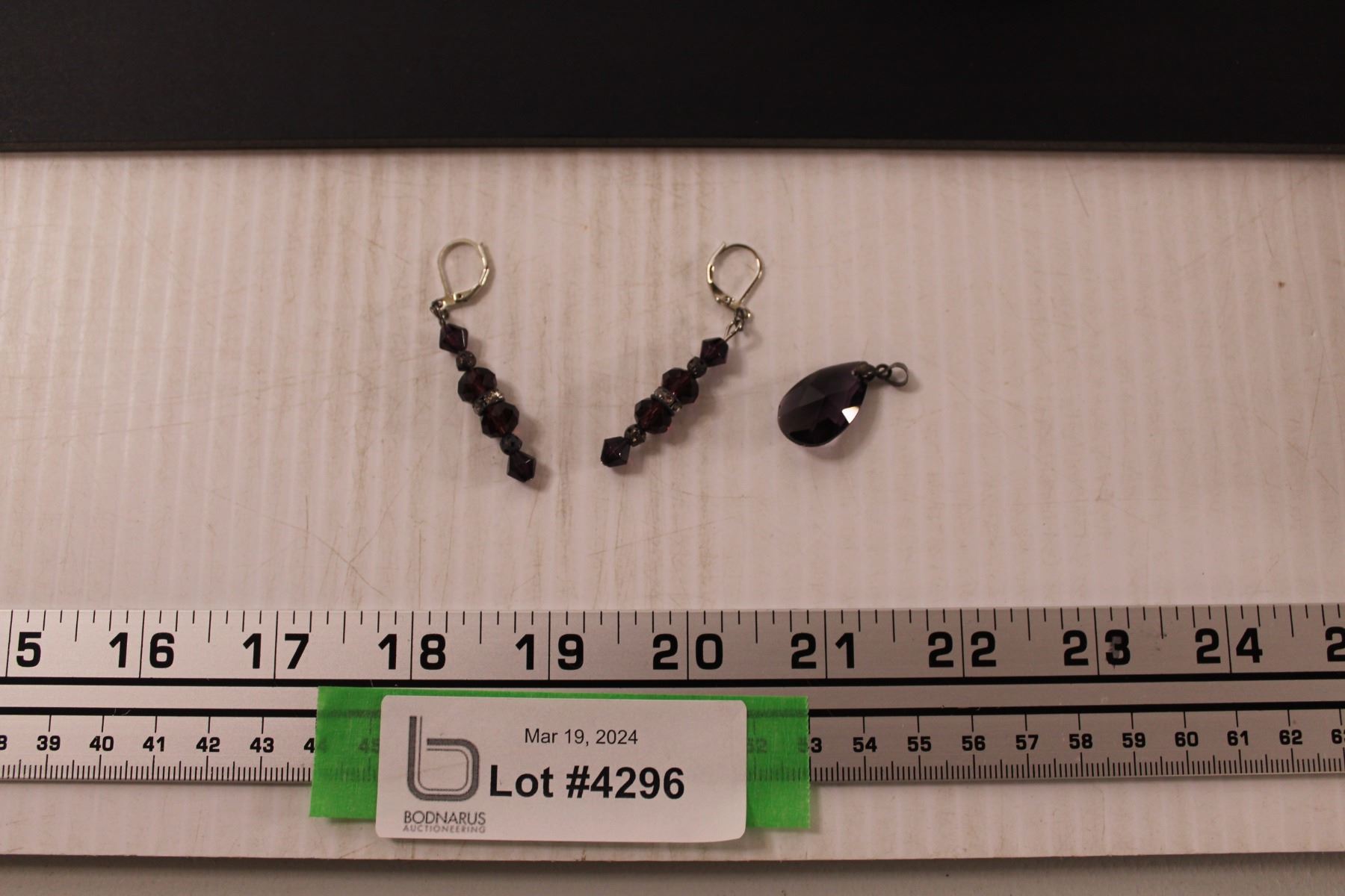 Purple Crystal & Clear Crystal Pendant Style Earrings
