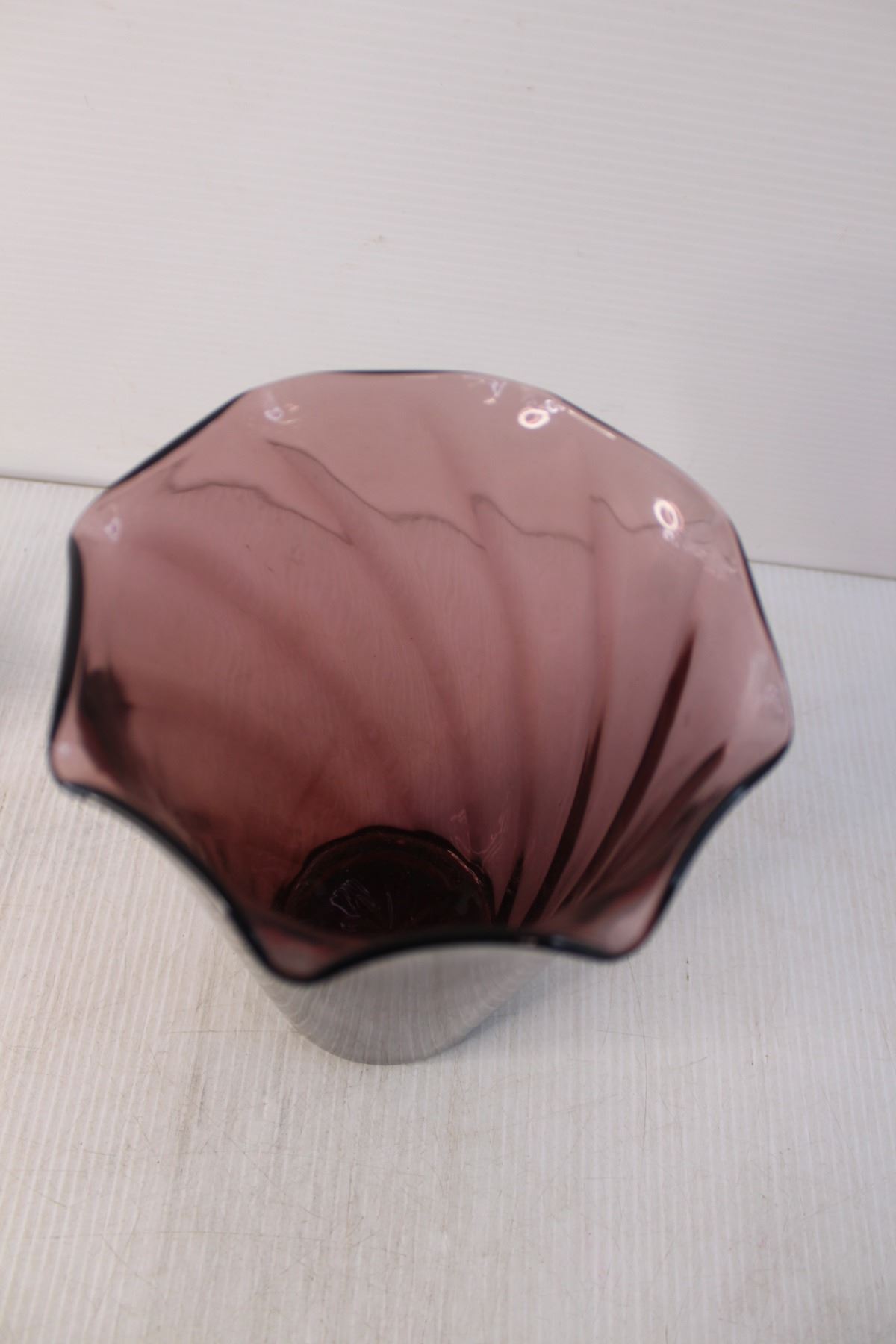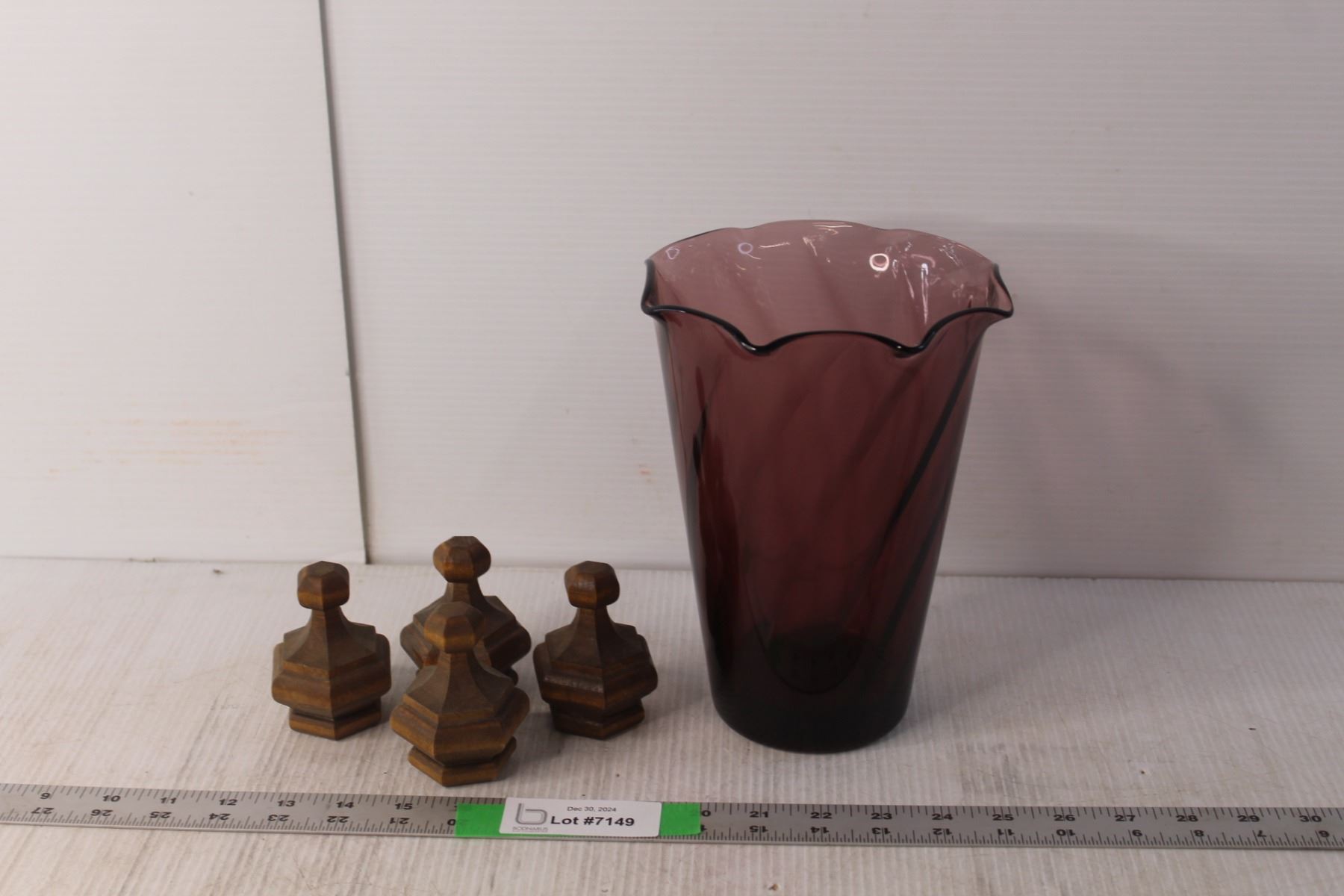Purple Glass Vase 8" Tall, (4) Wooden Decorations