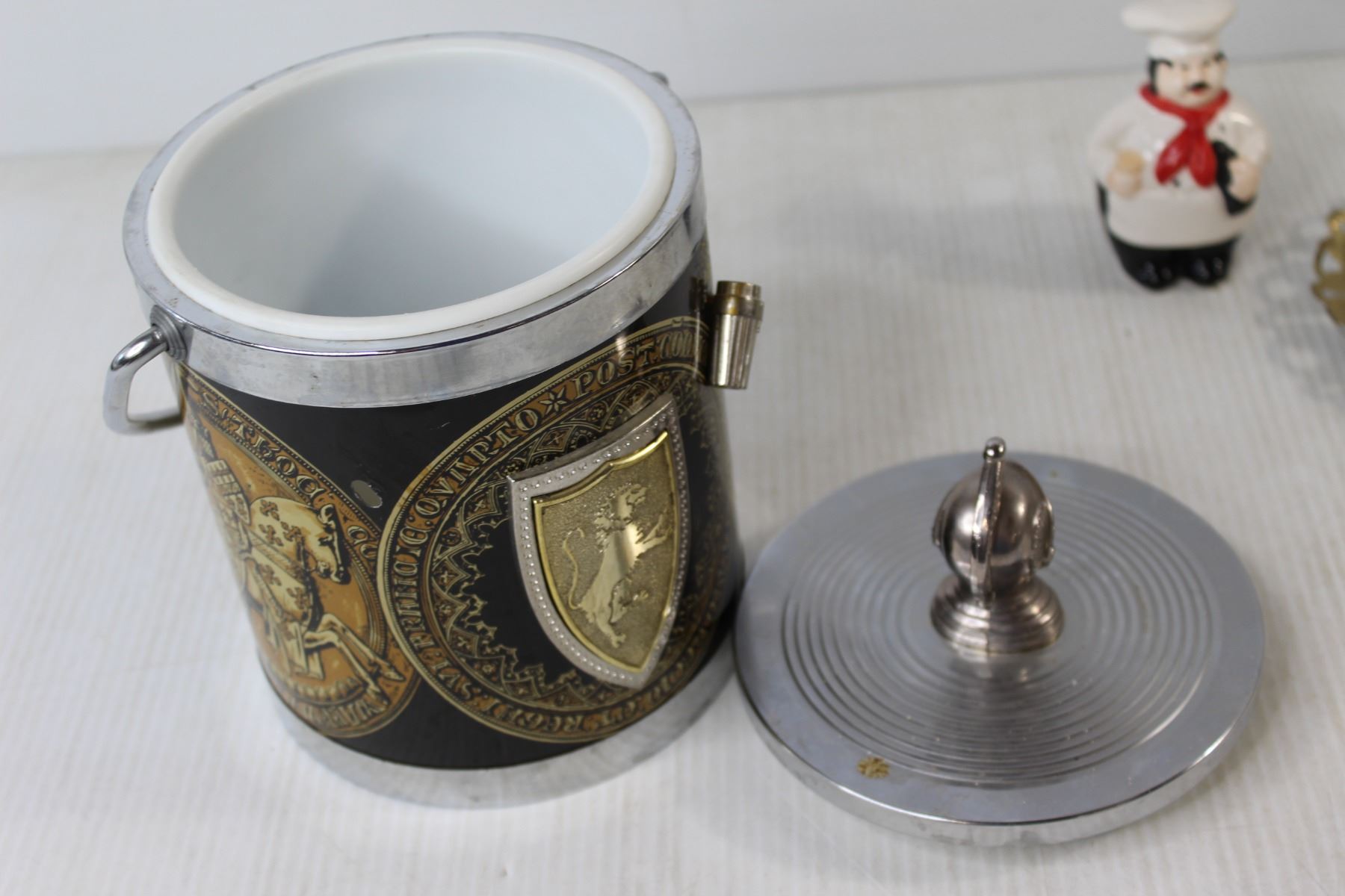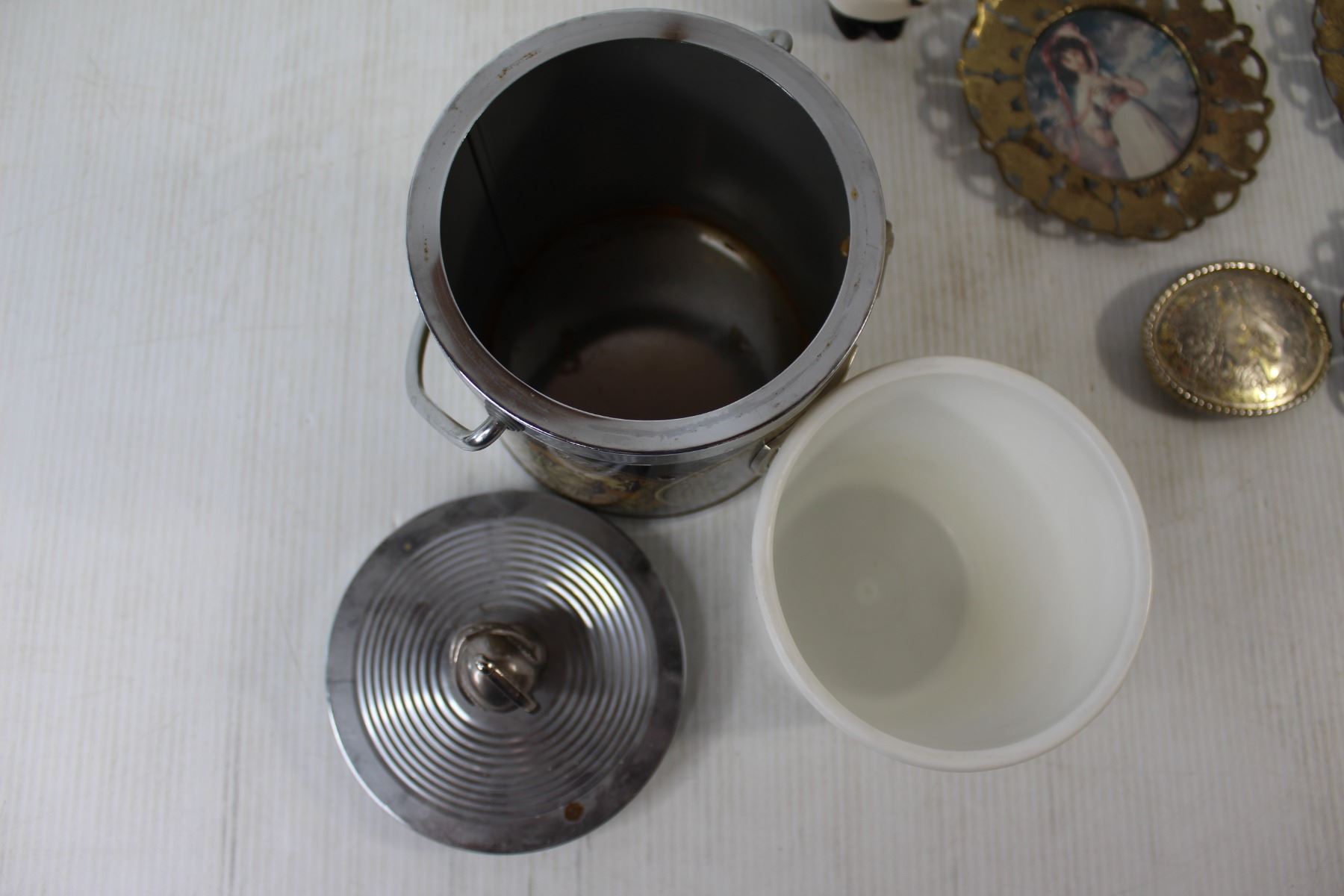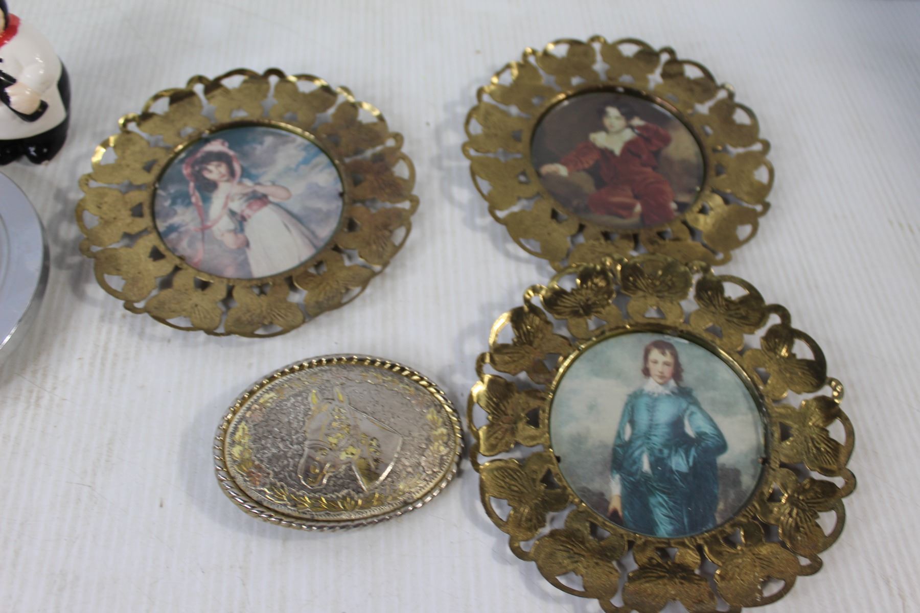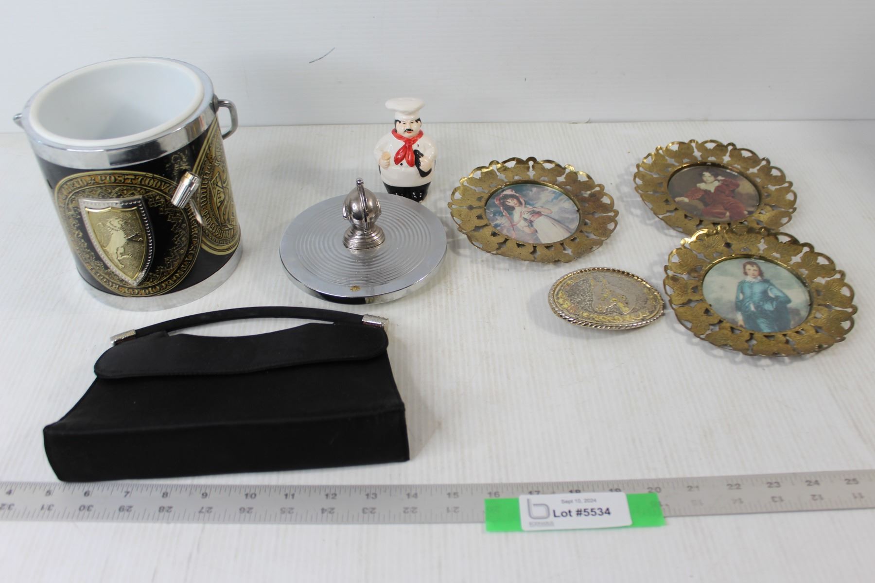 Purse/Handbag, (3) Coasters(Blue Boy Red Boy and Pink Lady), Belt Buckle, Salt/Pepper Shaker, Container