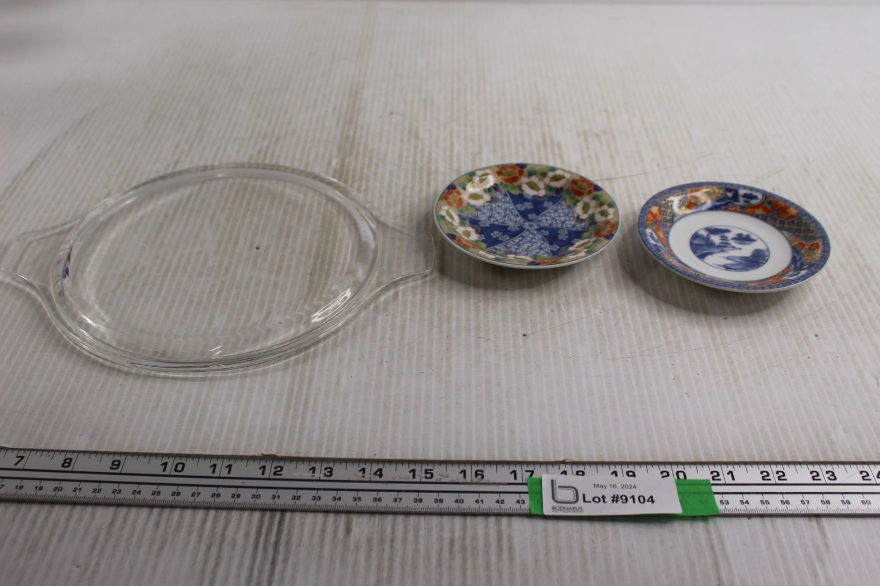 Pyrex Lid, (2) Asian Inspired Small Flat Dishes
