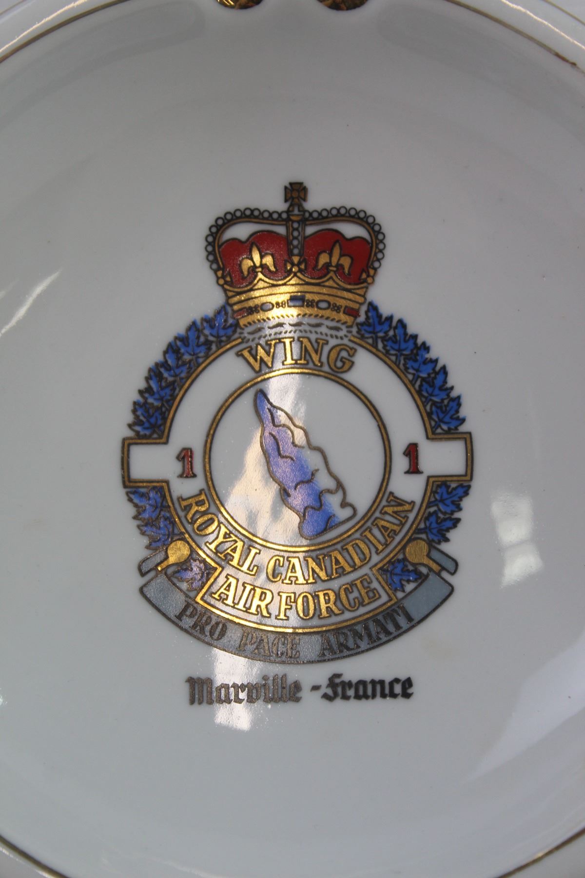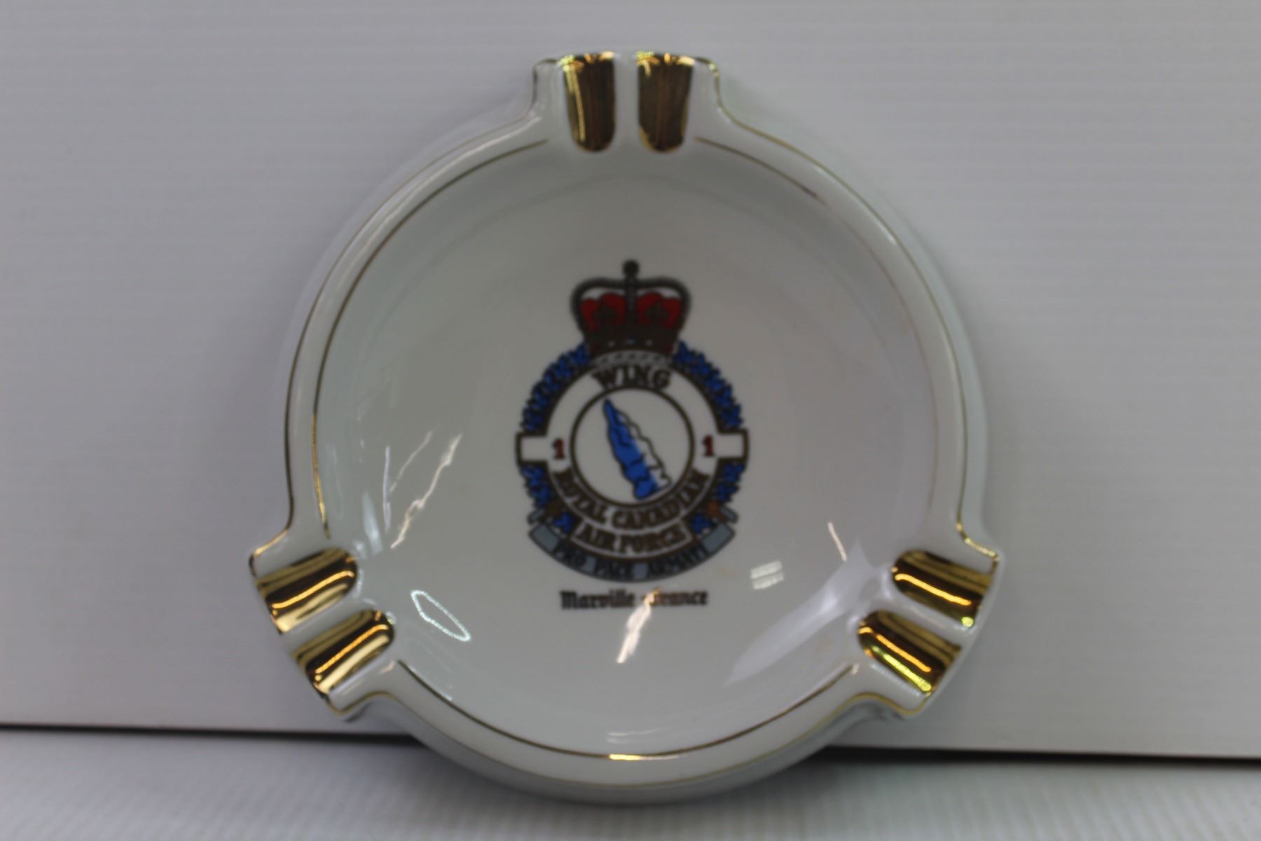 RCAF 1 Wing Decorative Ashtray with Gold Accents - Marville, France - Pro Pace Armati - Insignia