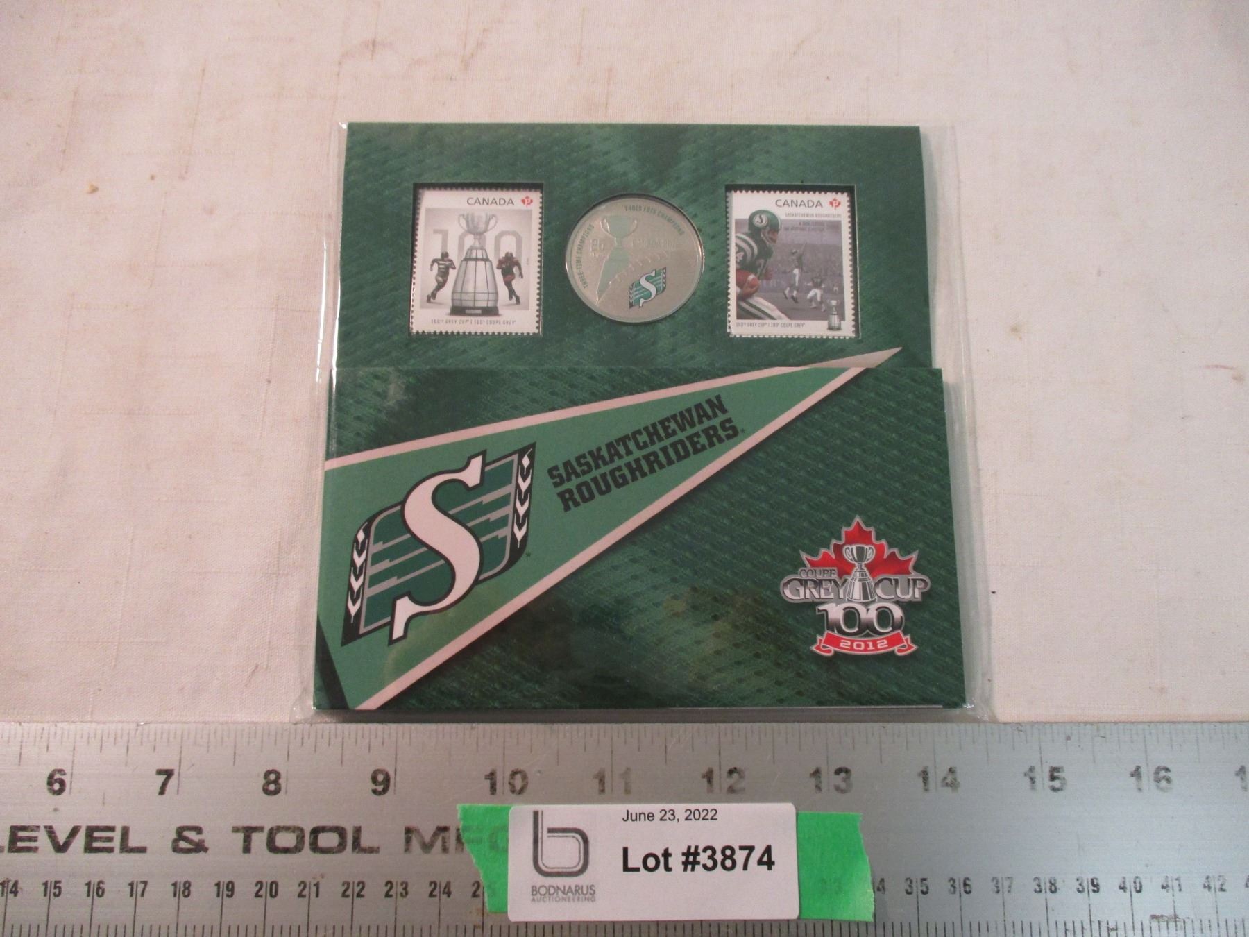 RCM 2012 Sask Roughriders Quarter + stamp set