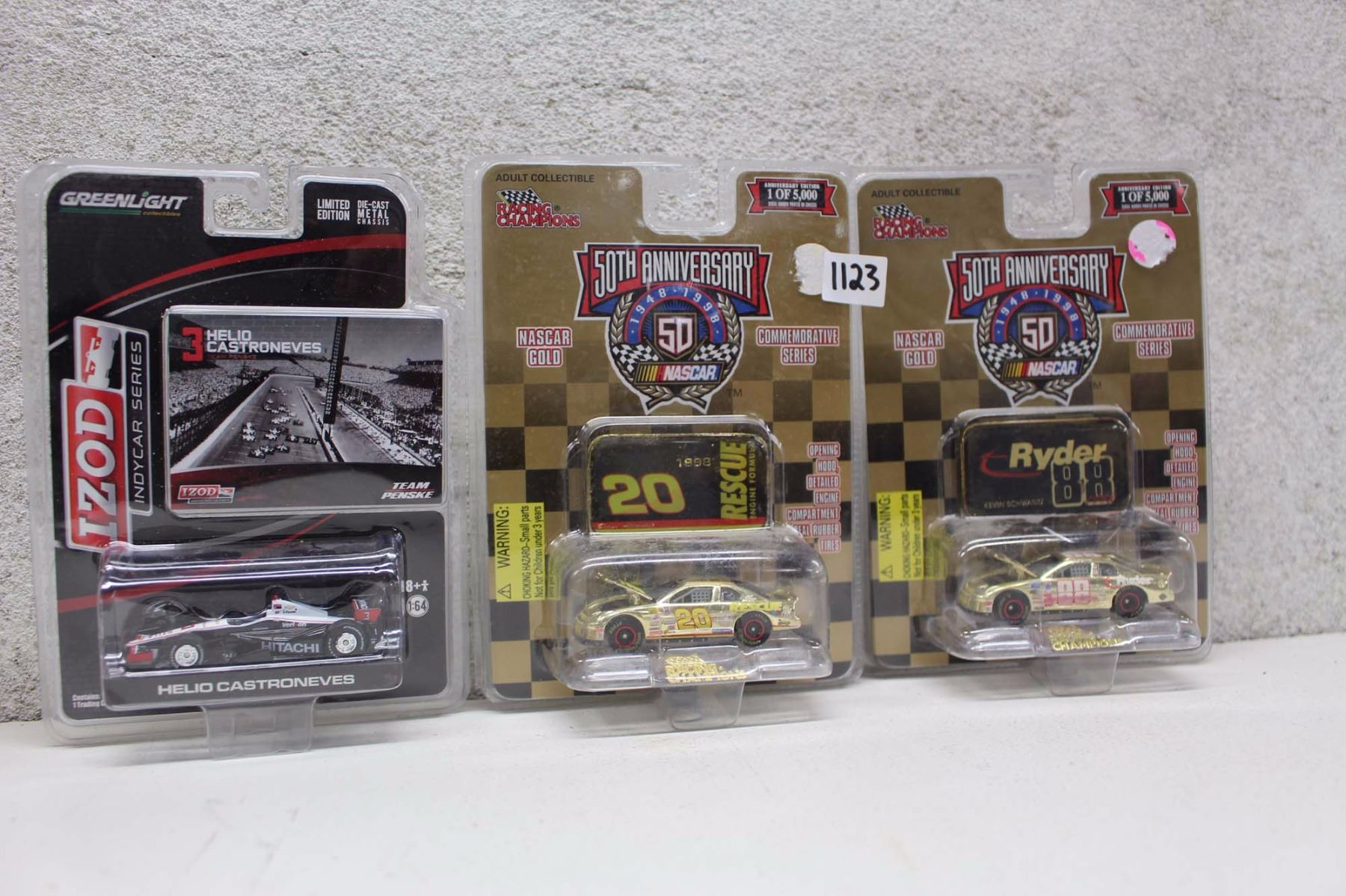 Racing Champions NASCAR Gold Models (2)(Blaise Alexander & Kevin Schwantz) & Green Light IZOD Model (Helio Castroneves)