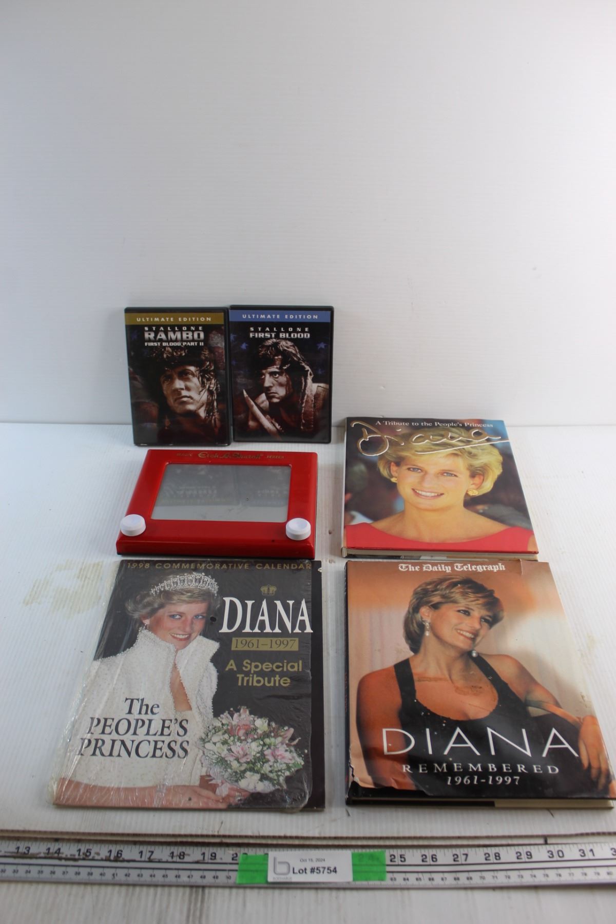 Rambo DVD Movies, Etch a Sketch and Princess Diana Magazines & Calendar