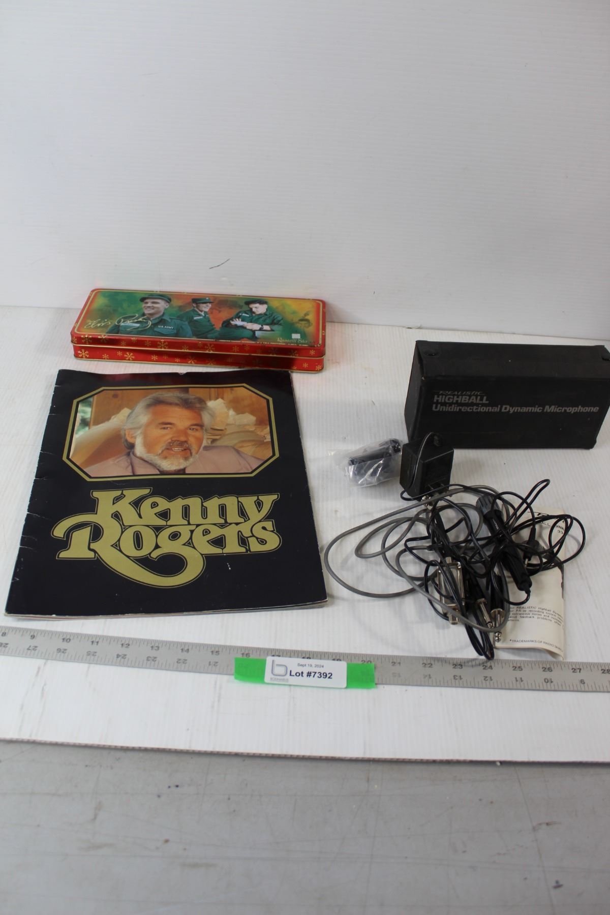 Realistic Small Microphone Set, Kenny Rogers Souvenir Scrapbook, Christmas Chocolate Tin