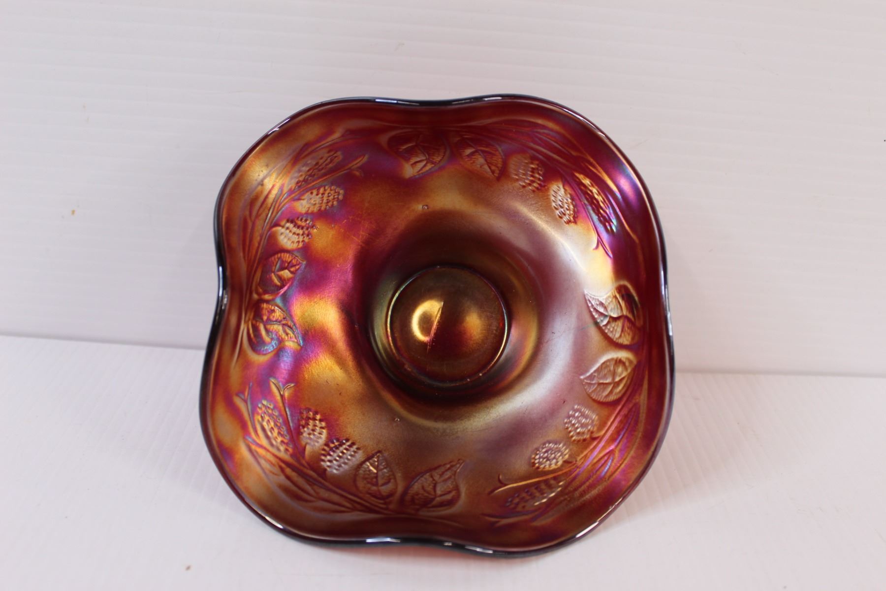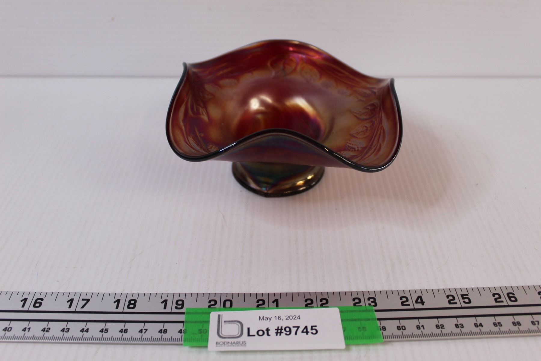 Red Fenton 1907 Carnival Glass "Holly Pattern" 4-Sides Up 6" Hat Vase