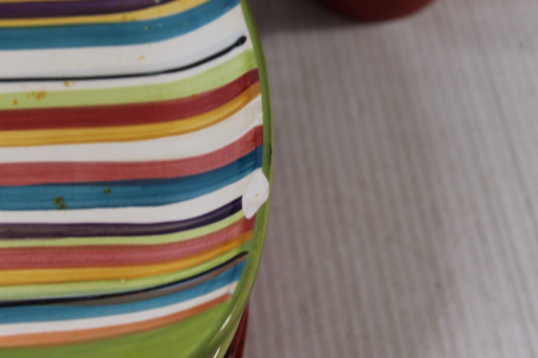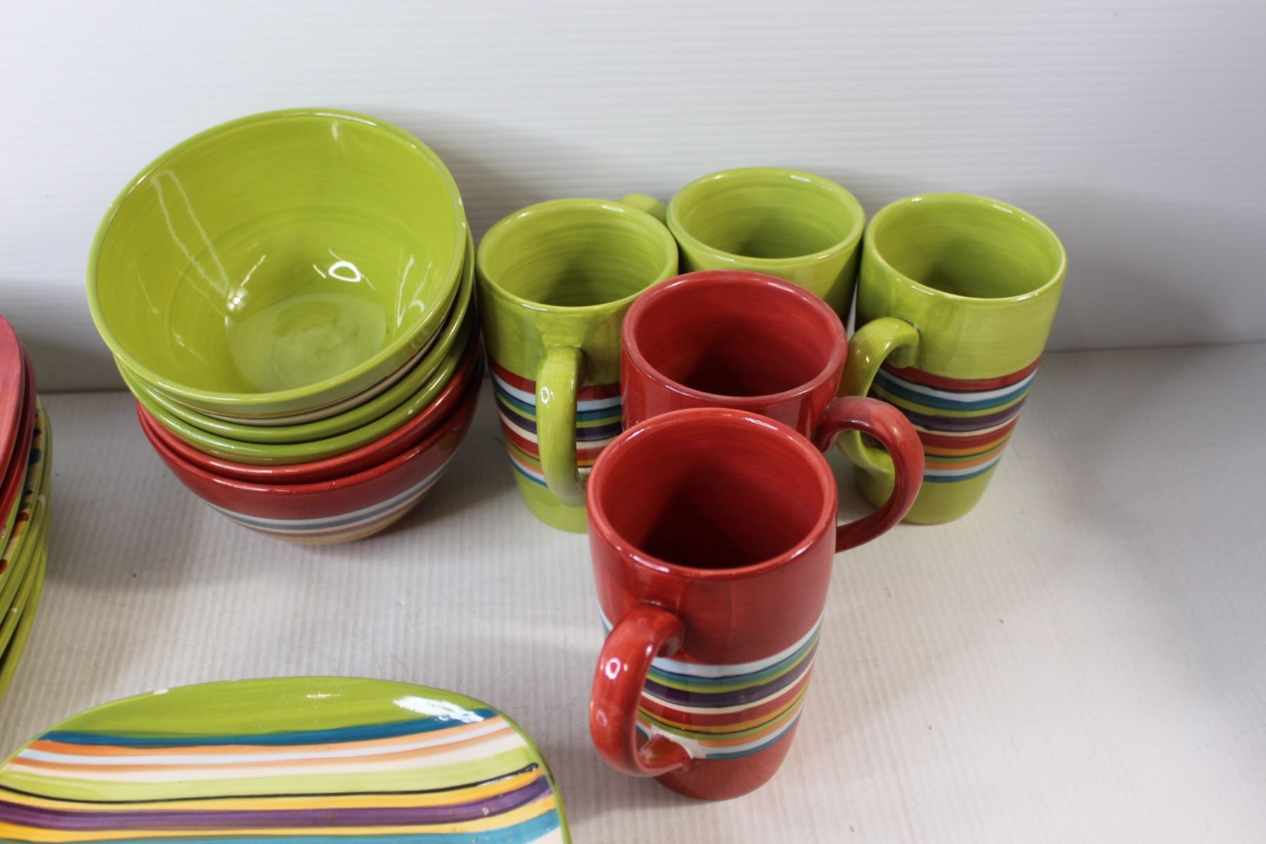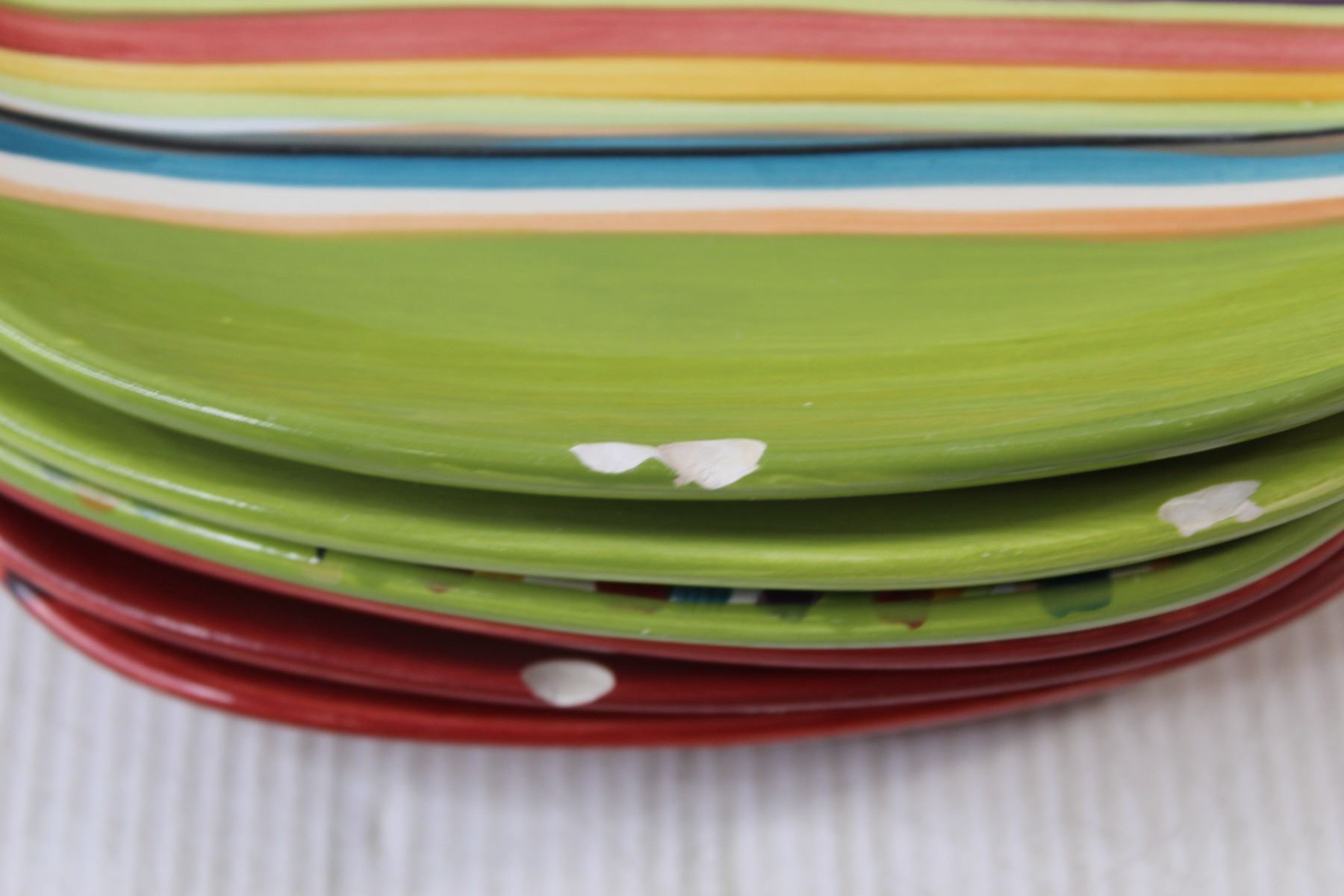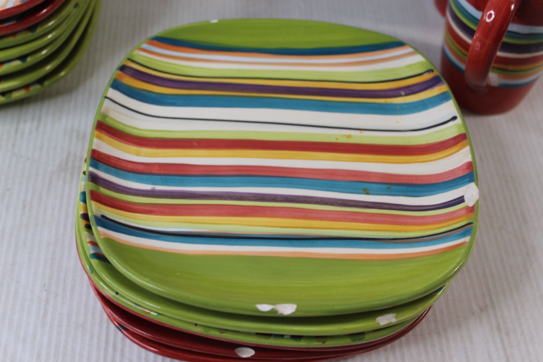 Red & Green Striped Dish Set - As Is - Some Chipping