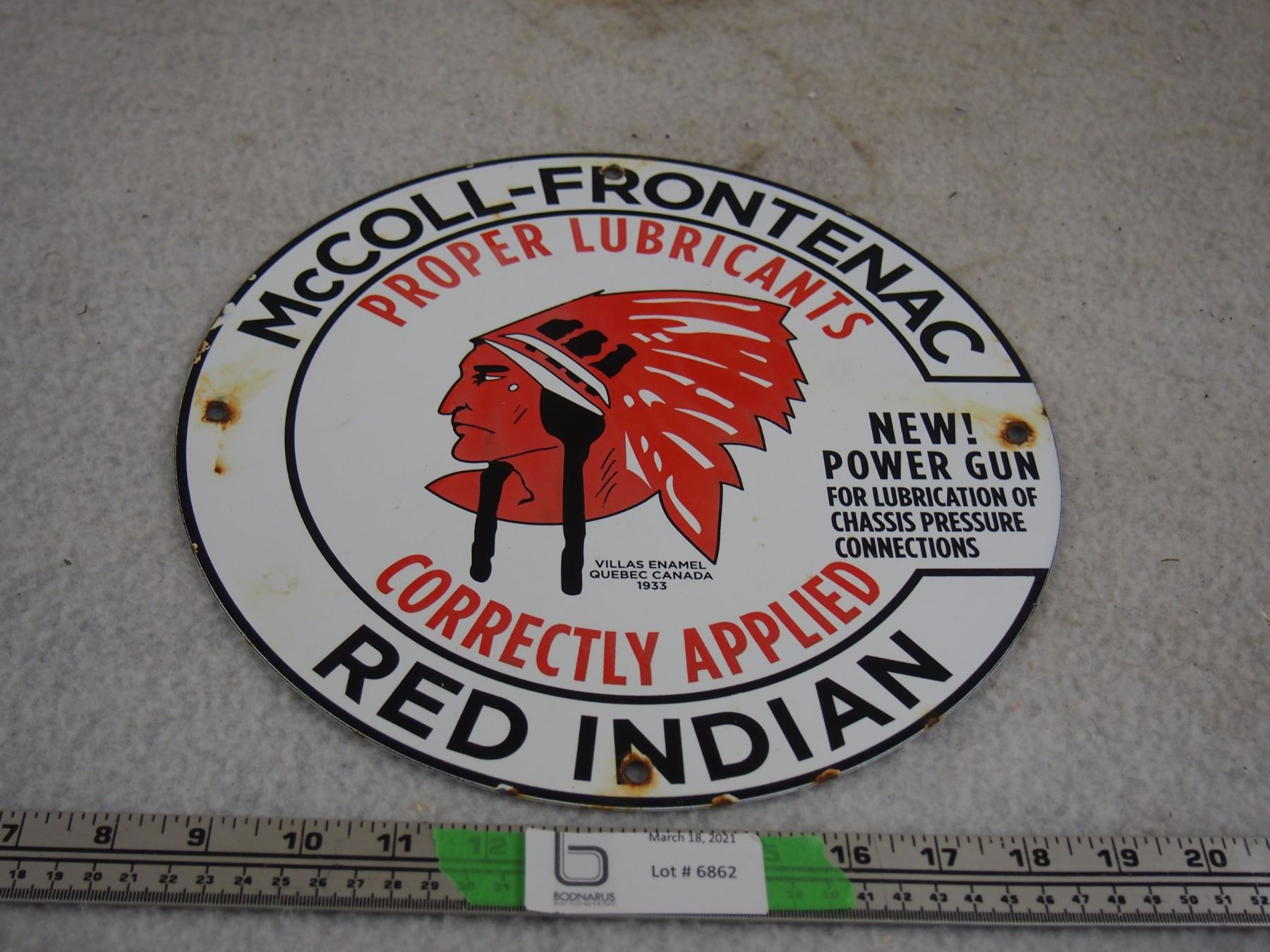 Red Indian McColl Finntome Enamel Sign 11.75" Diameter