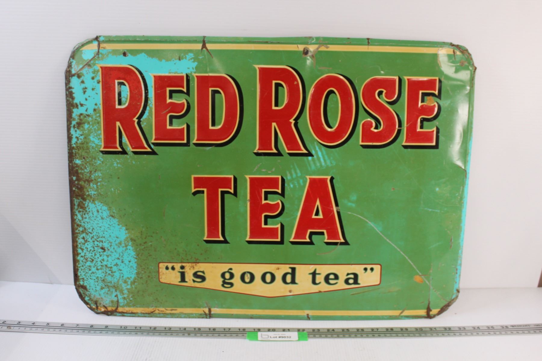 * Red Rose Tea Metal Sign - Some Wear - 27" x 19"