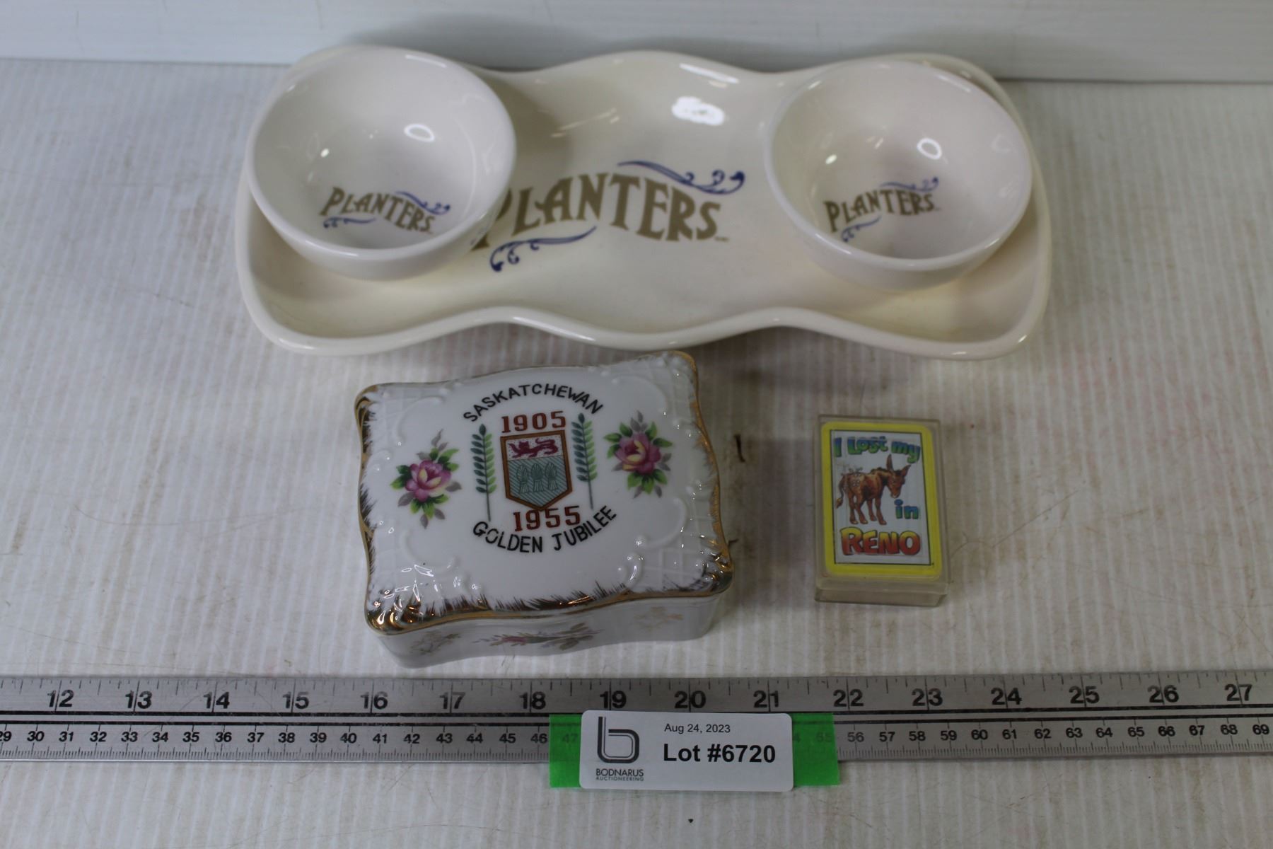 Reno Cards - Planters Nut Platter w/Bowls - Saskatchewan Golden Jubilee Dish w/Lid