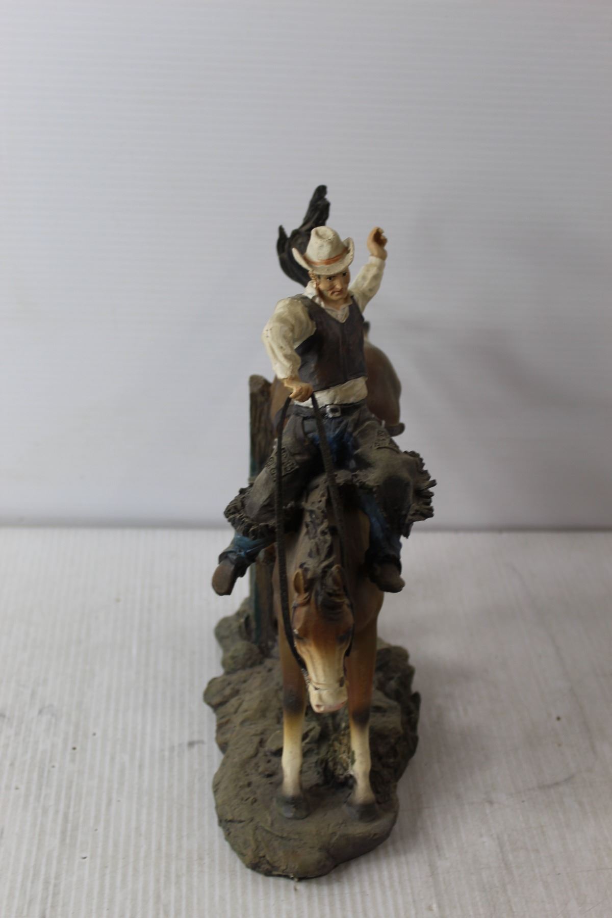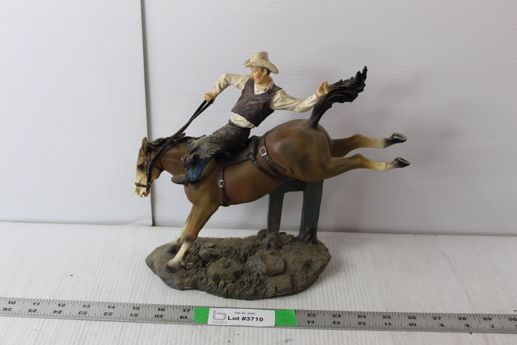 Resin Cowboy & Horse Statue 10" Tall x 11" Long.