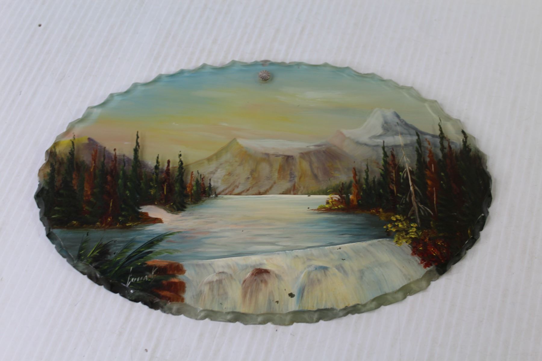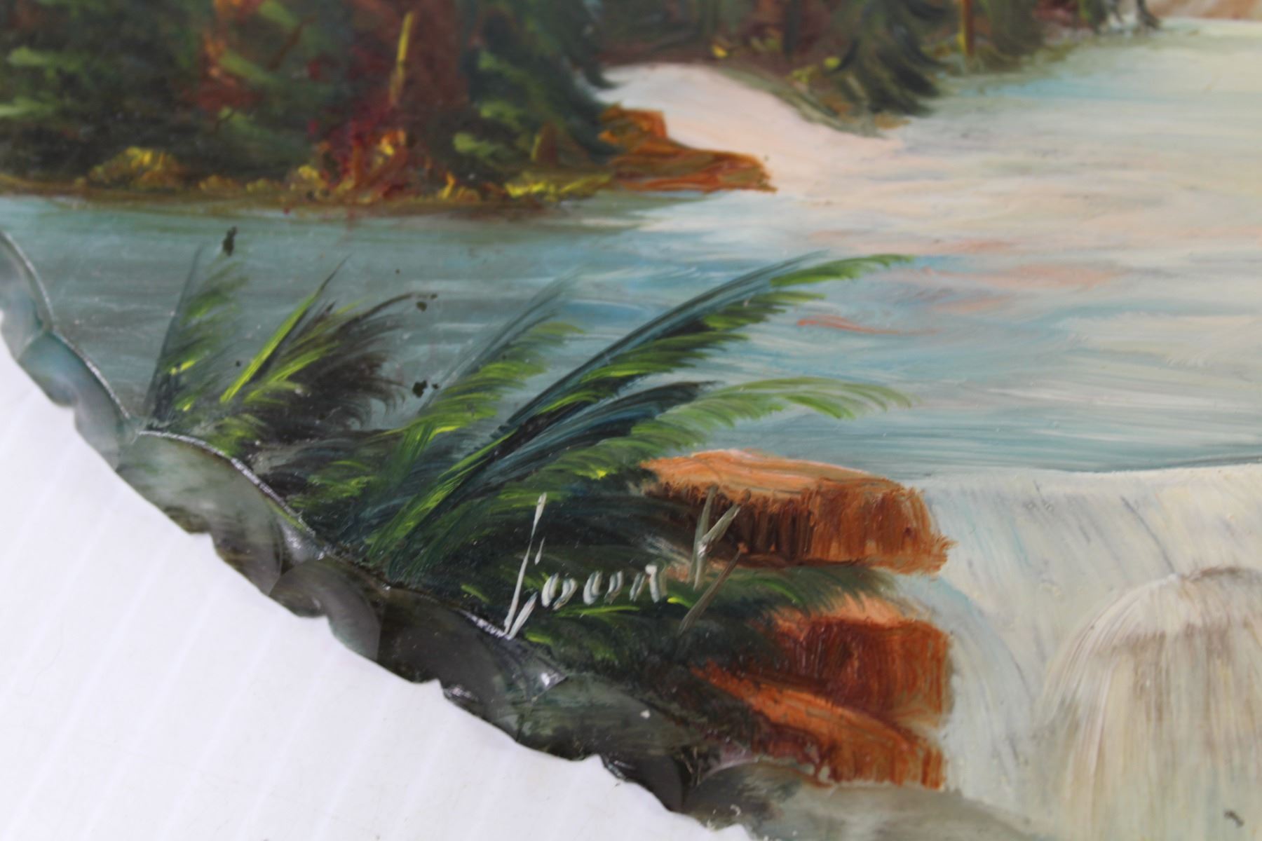 Reverse Painted Glass Picture - Signed Court