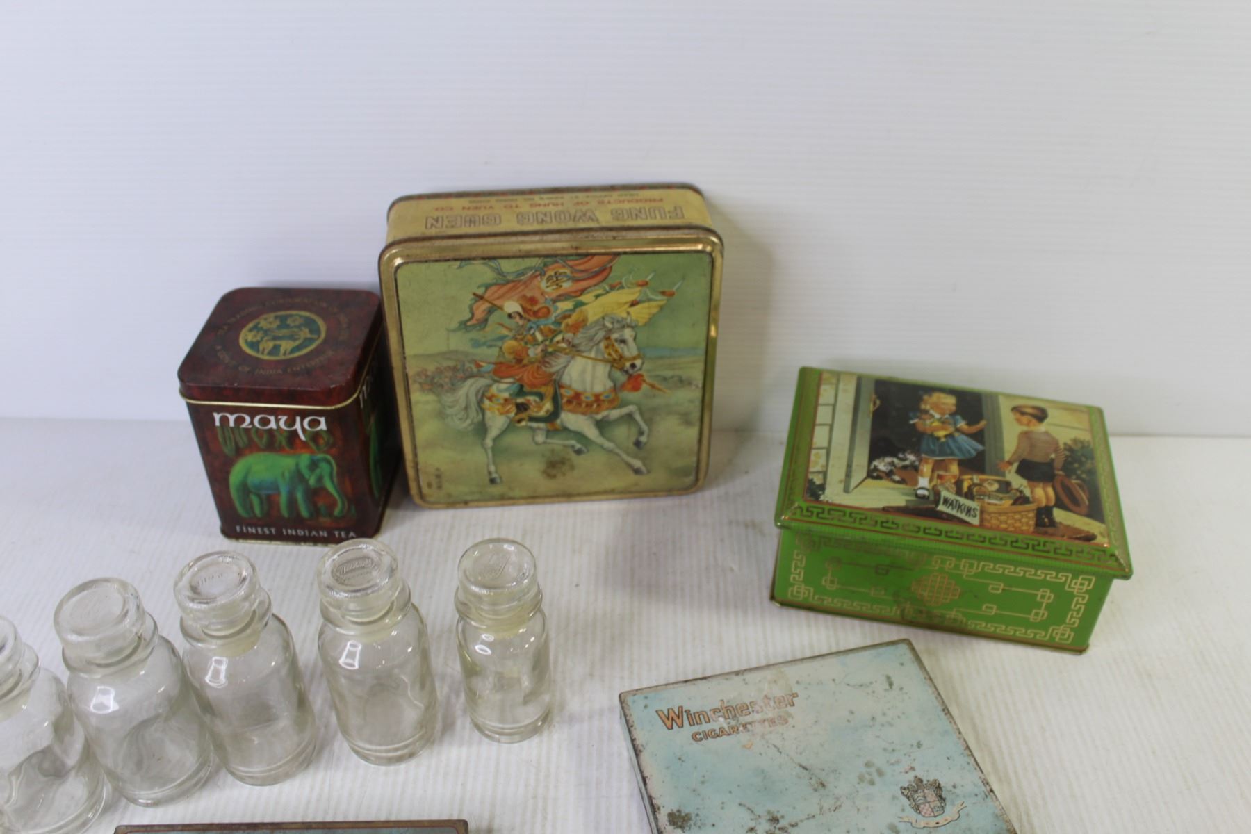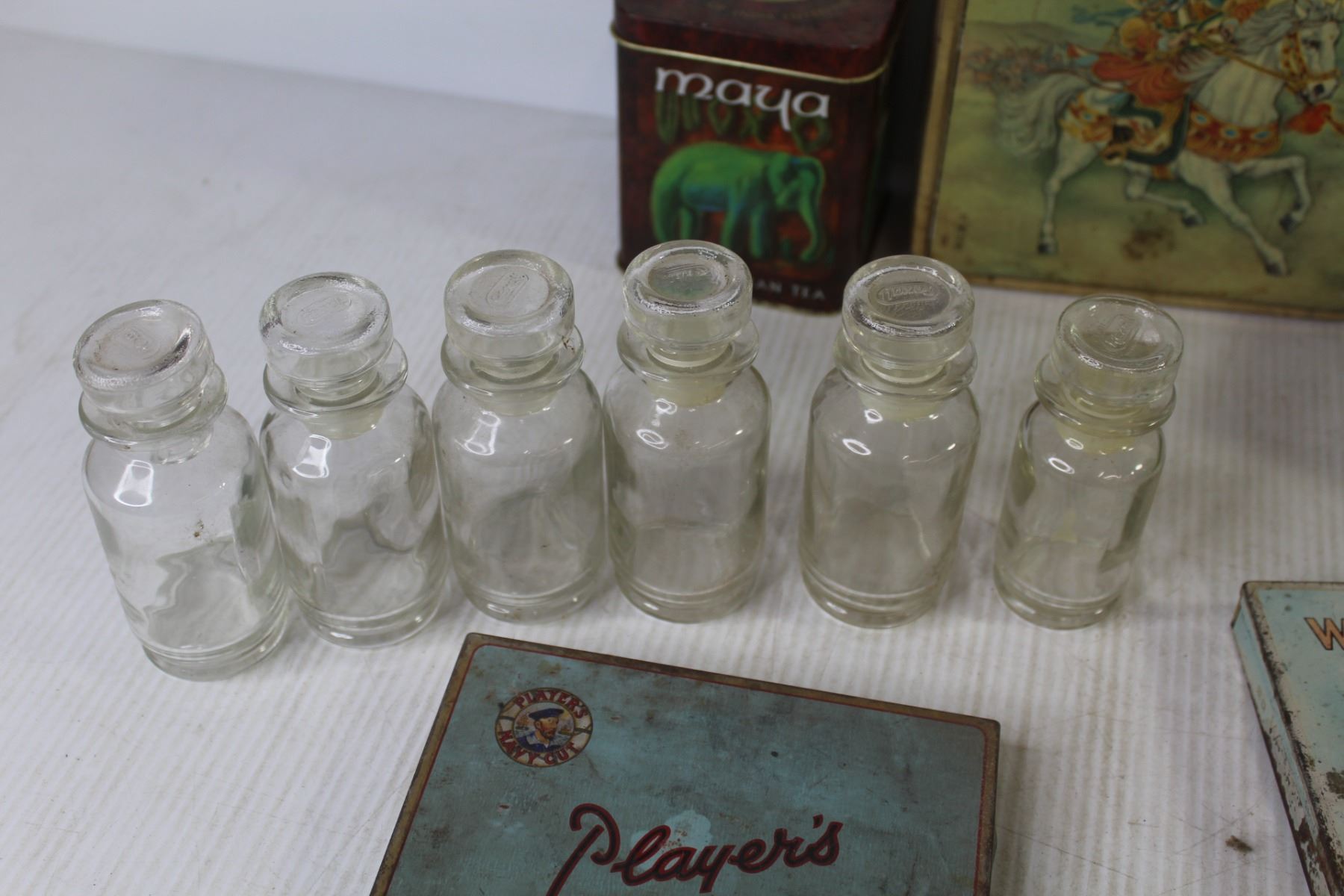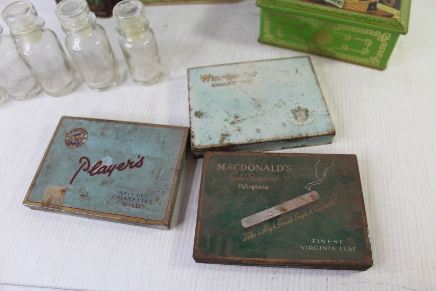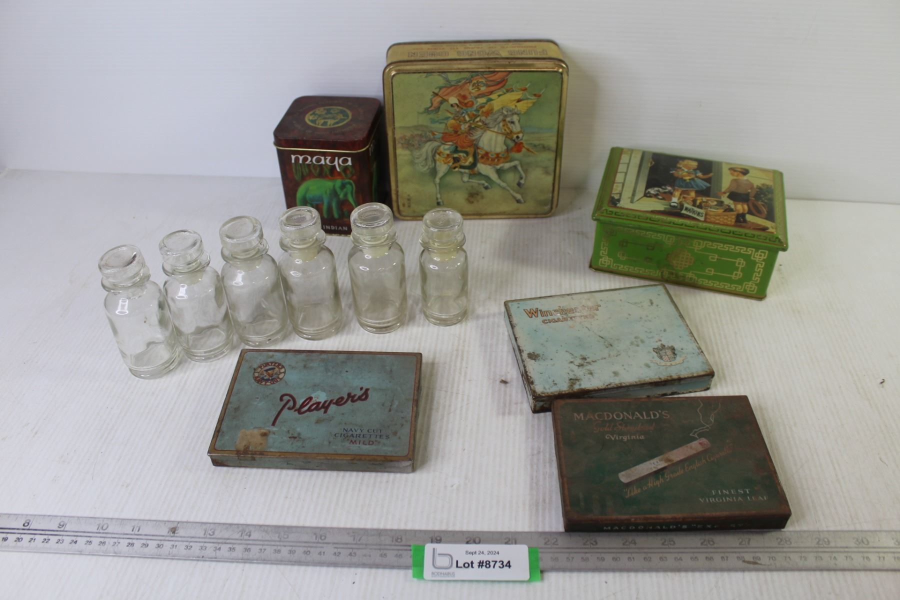 Rexall Glass Bottles - Vintage Tea Tins - (3) Cigarette Tins - McDonalds - Player's - Winchester