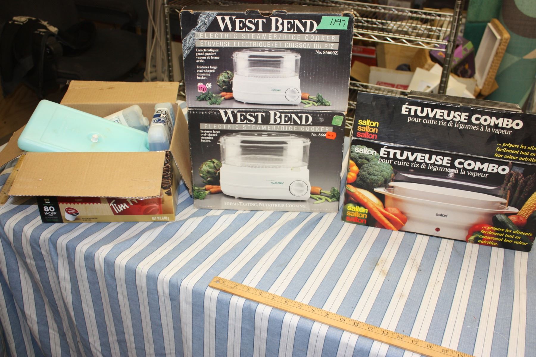 Rice Cooker, Vegetable Steamer and Box of Cooling Packs