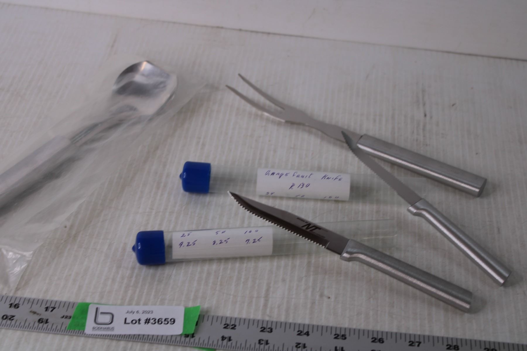 Rios Serrated Steak Knife + Grape Fruit Knife + Carey Spoon + BBQ Fork