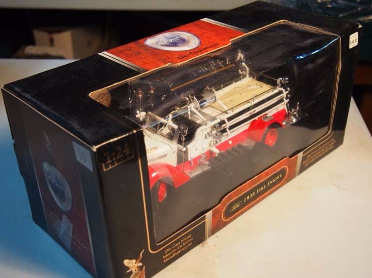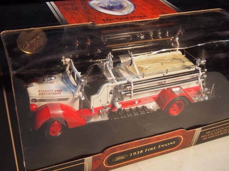 Road Signature - 1/24 1938 Ford Fire Engine, Die Cast Metal W/ 24k Gold Plated Coin
