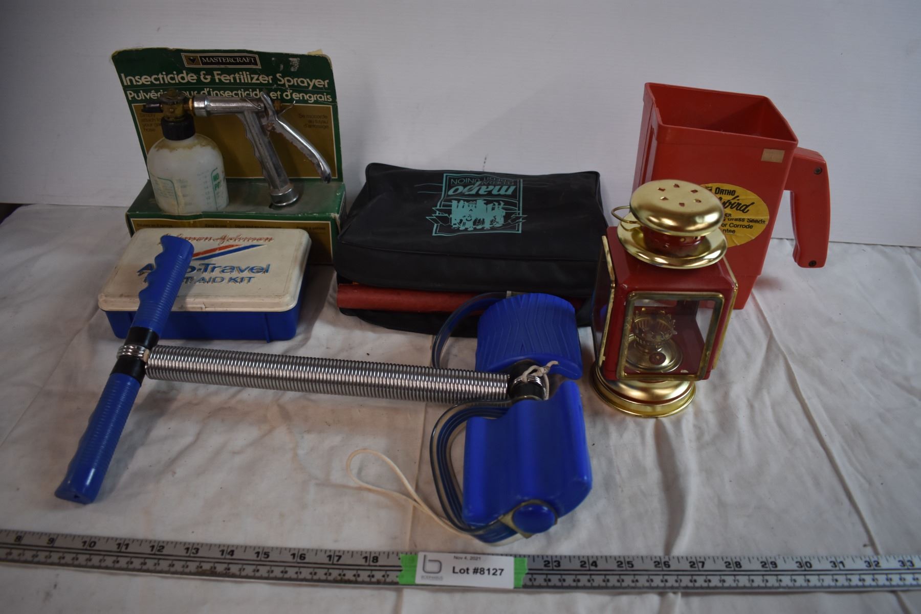 Roadside Safety Kit, Lantern, and Fertilizer Sprayers