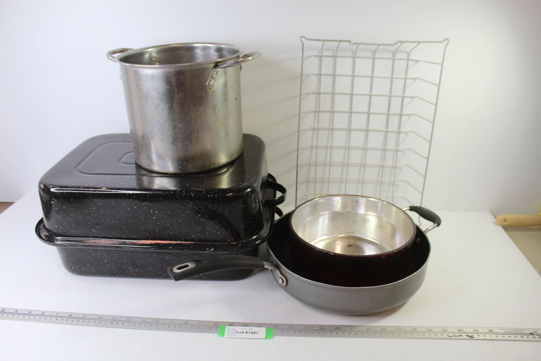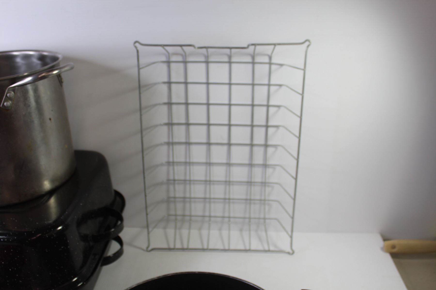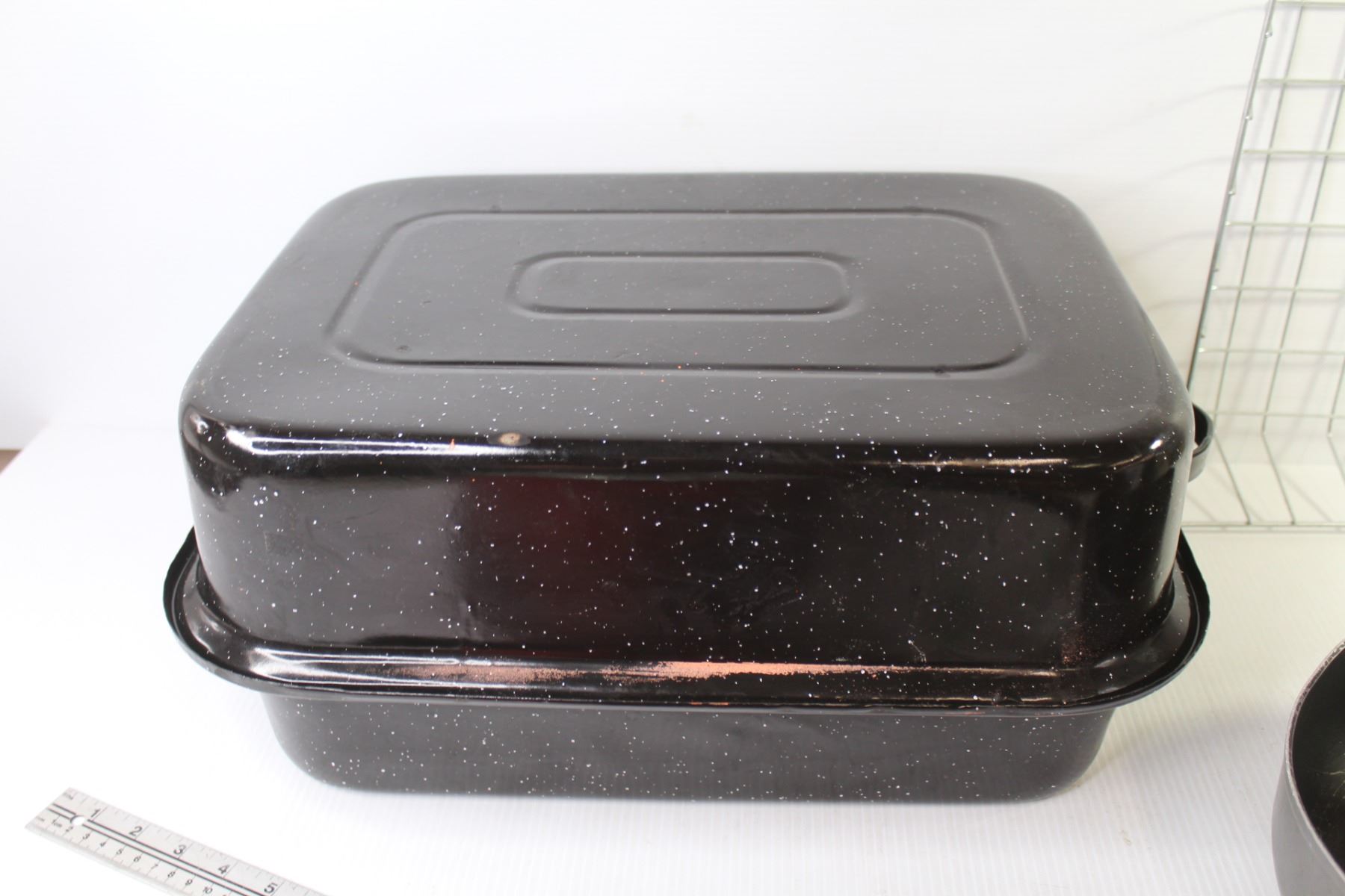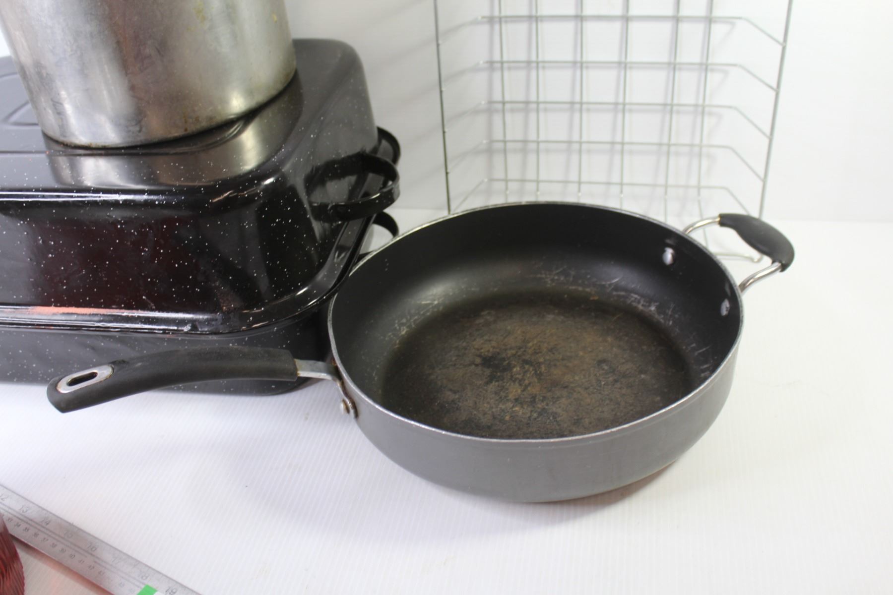 Roasting Pan - Red Glass Bowl - Frying Pan - Wire Basket - Cooking Pot