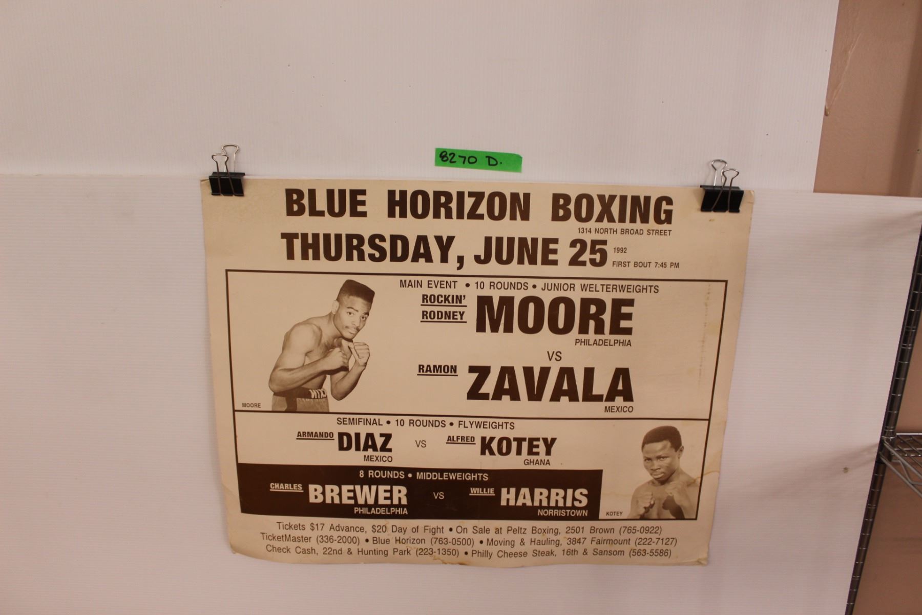 Rockin' Rodney Moore Vs. Ramon Zavala & Armando Diaz Vs. Alfred Kotey & Charles Brewer Vs. Willie Harris In Original Blue Horizon Boxing Poster - 22" x 28"