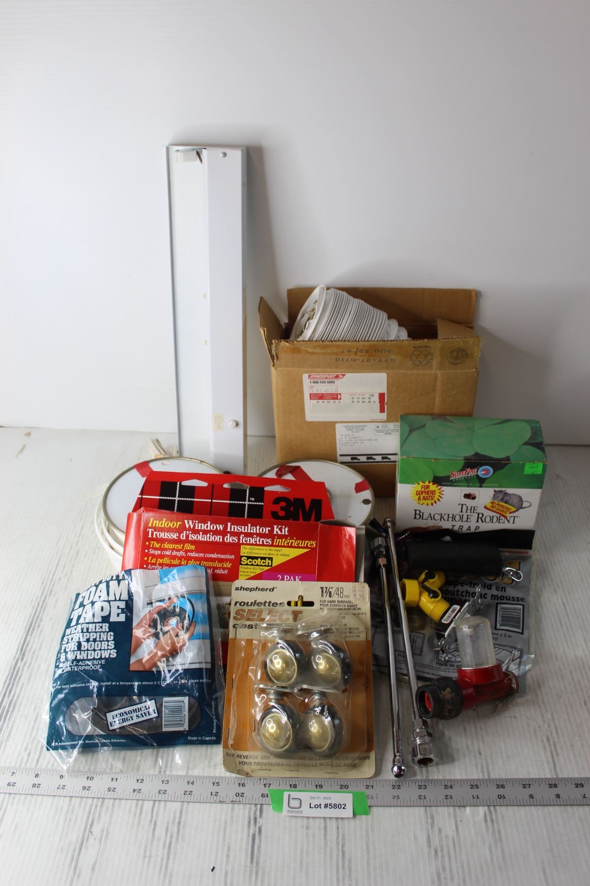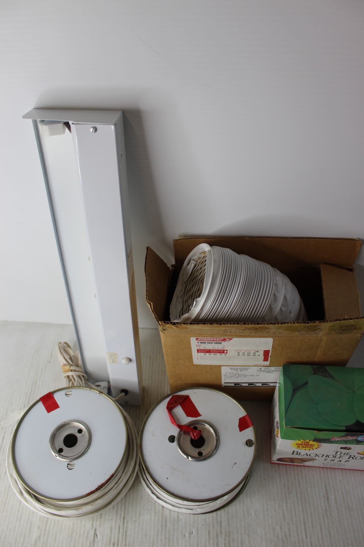 Rodent Trap, Assorted Plumbing Parts, Light