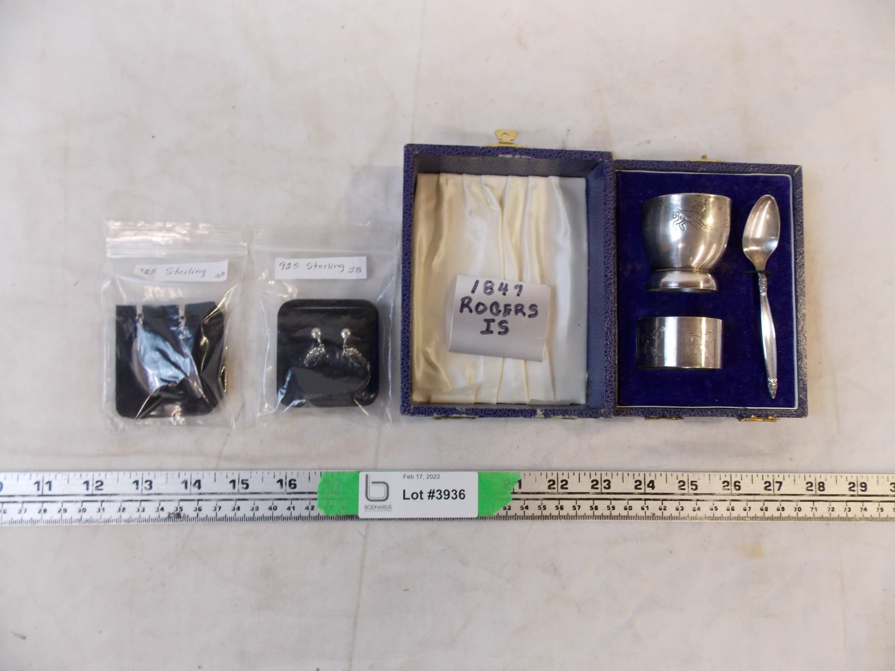 Rogers Child’s Silver plated set + 2 pairs of sterling earrings
