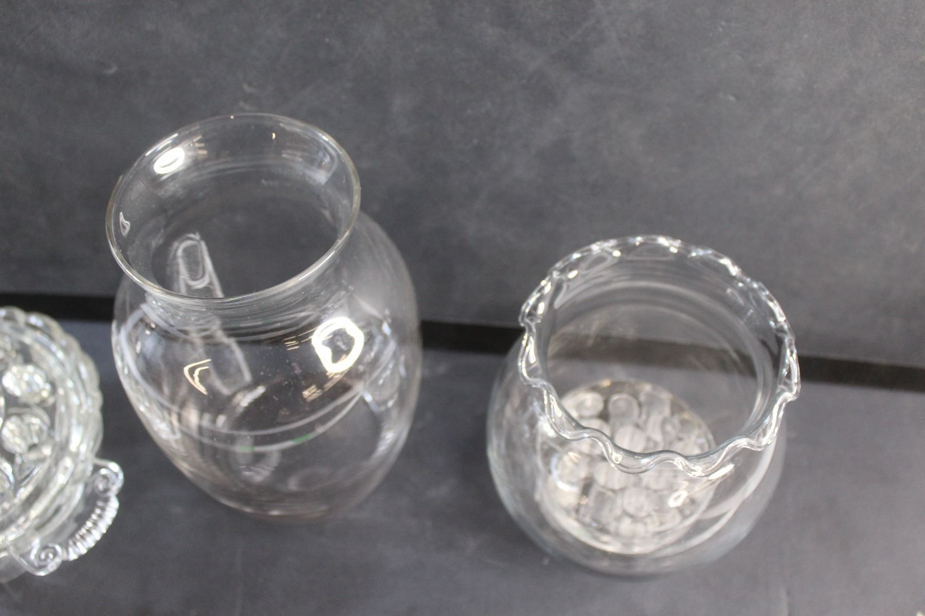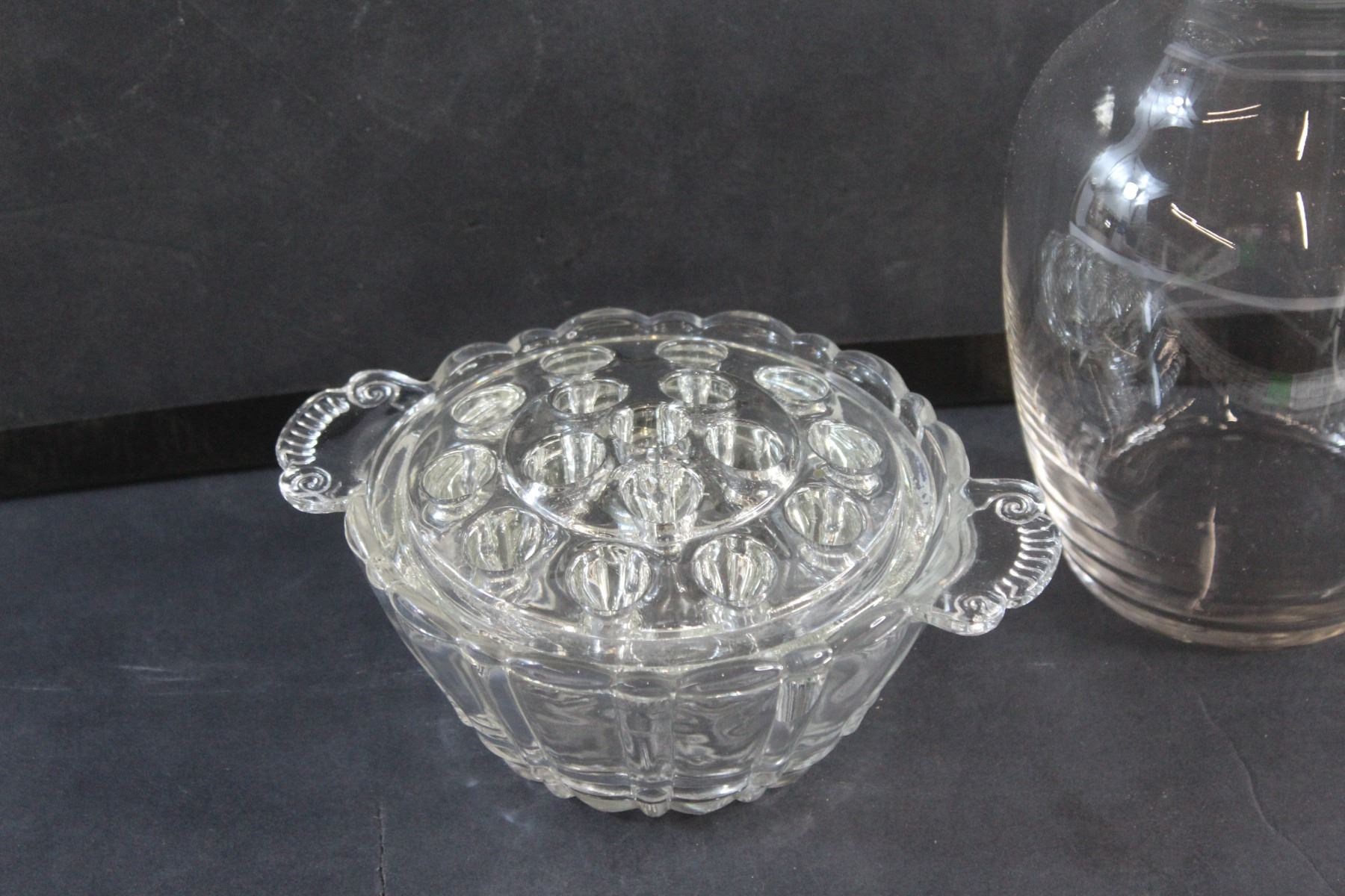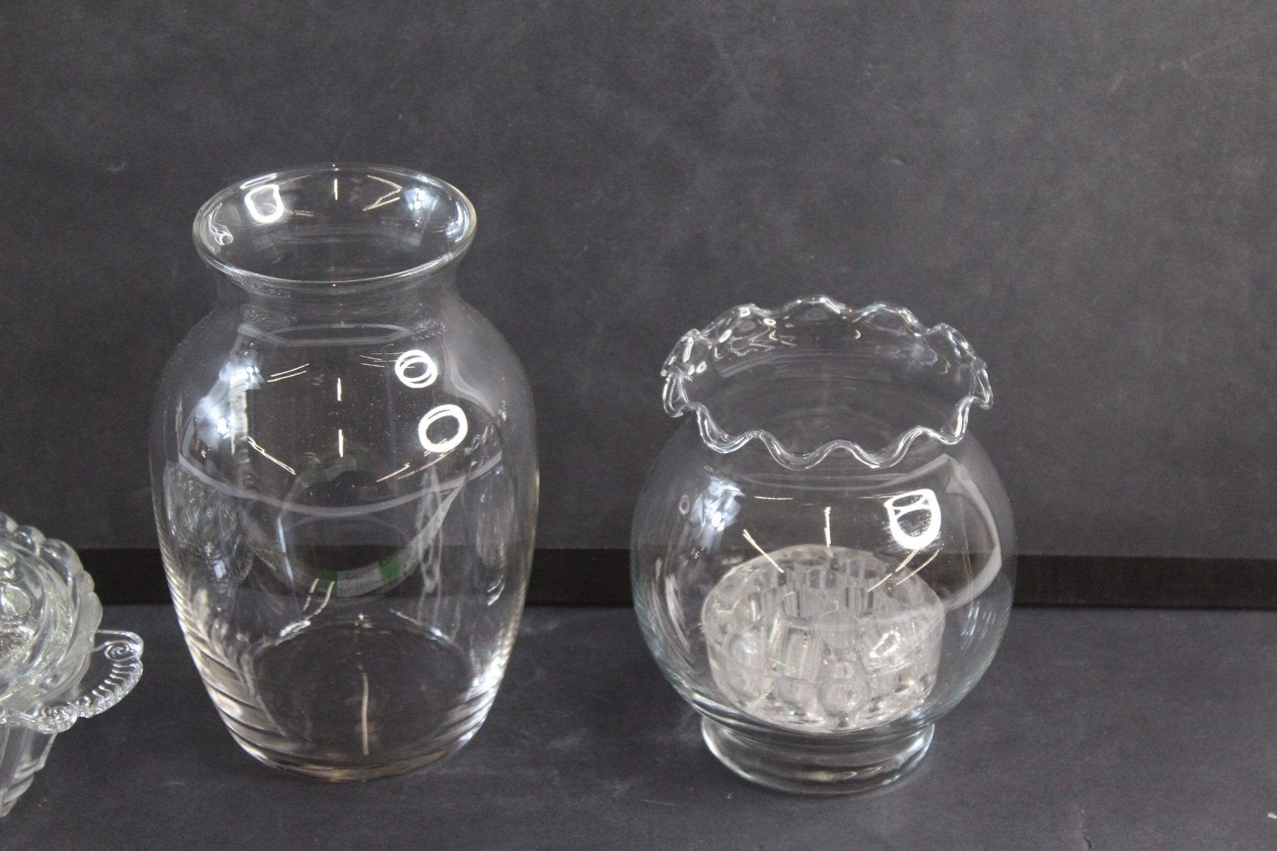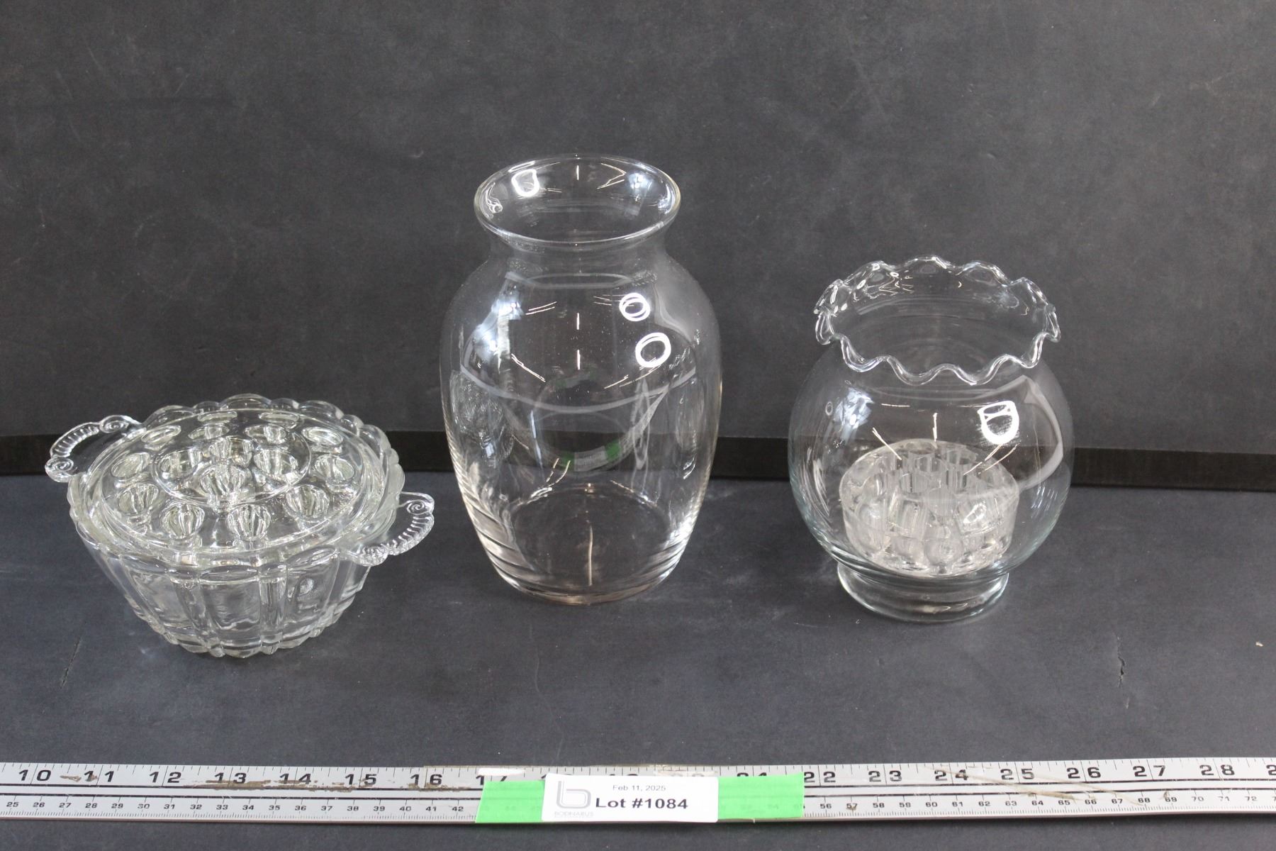 Rose Bowl Vase, Vintage Anchor Hocking Old Cafe Flower Dish, Round Clear Glass Vase and Vintage Clear Glass Vase