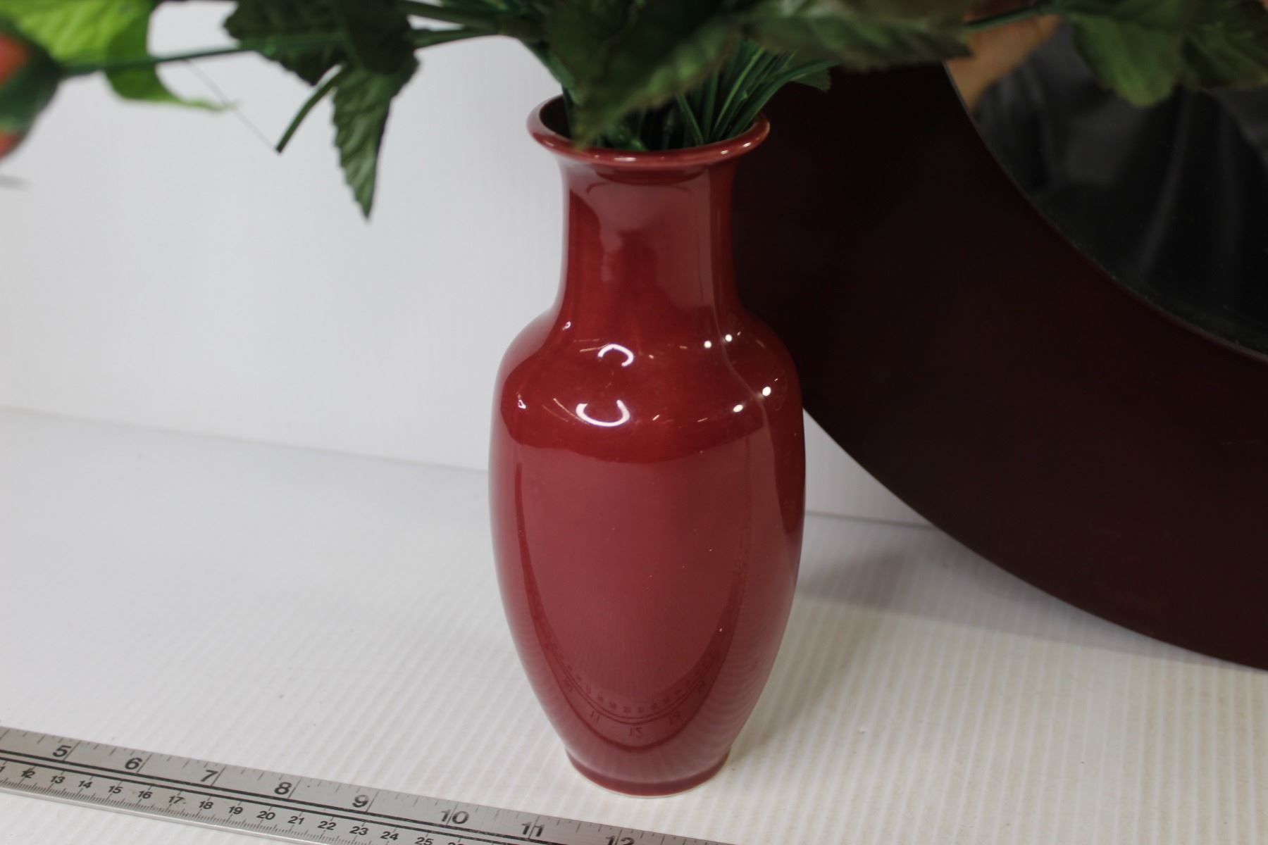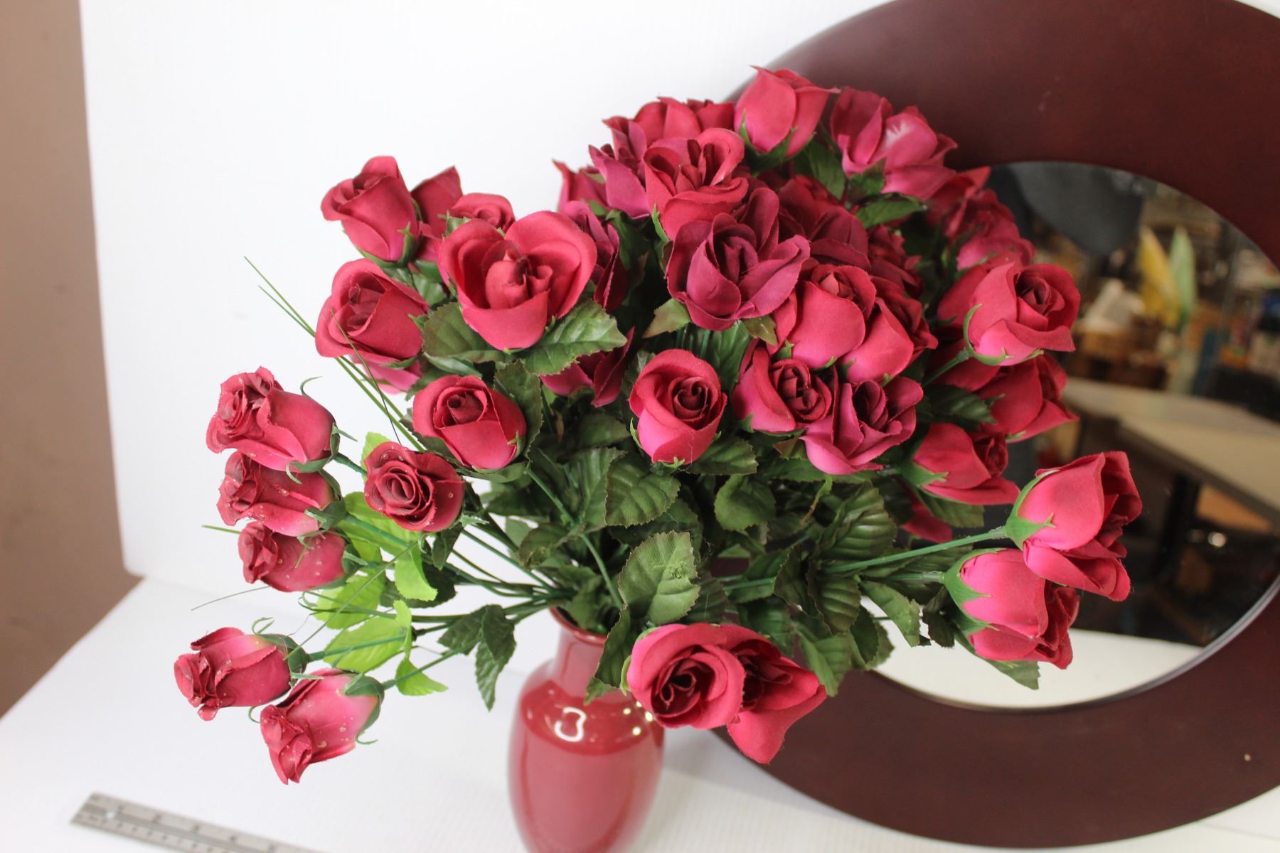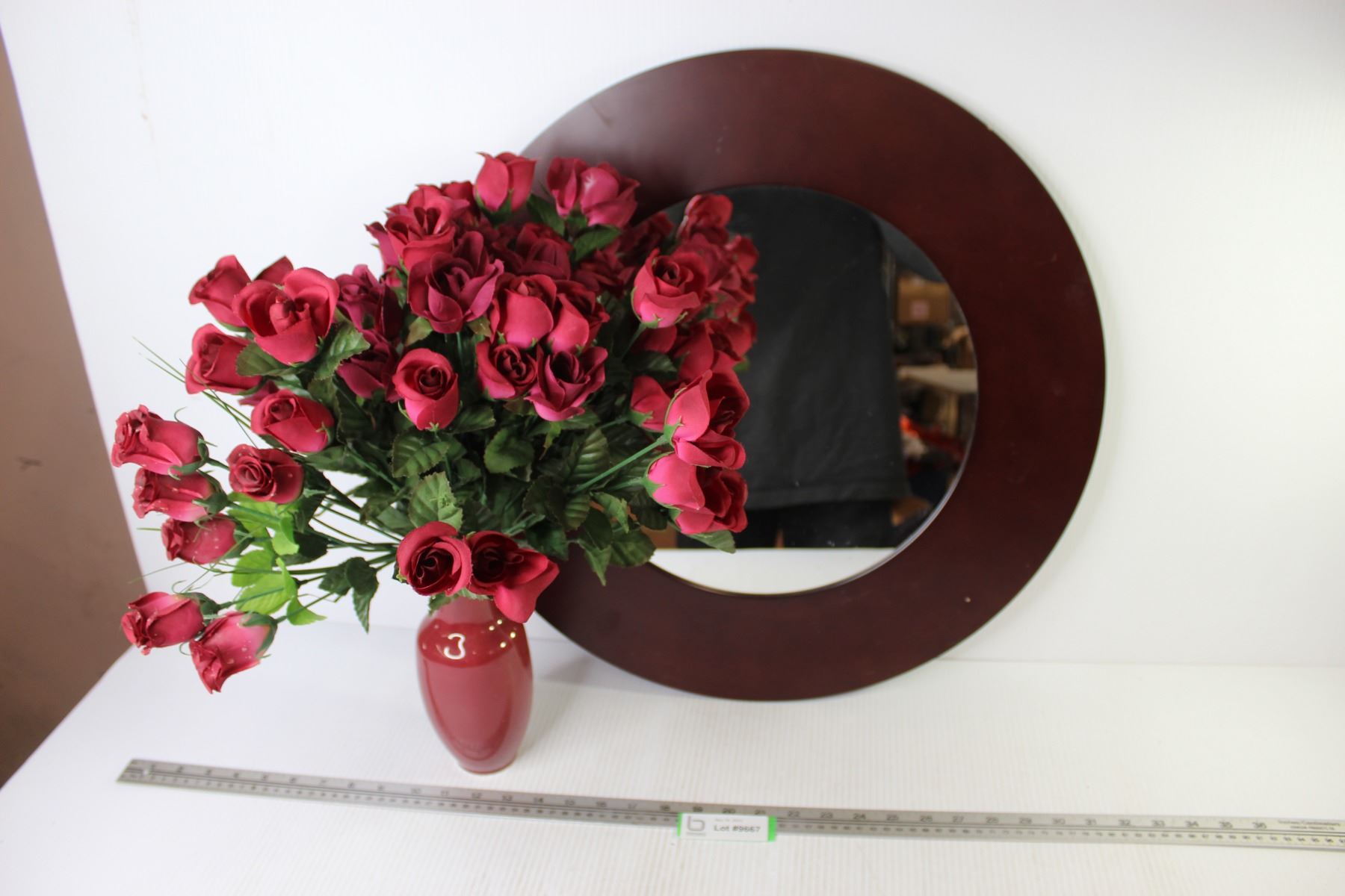 Round Framed Umbra Mirror - Ceramic Vase w/Faux Flowers