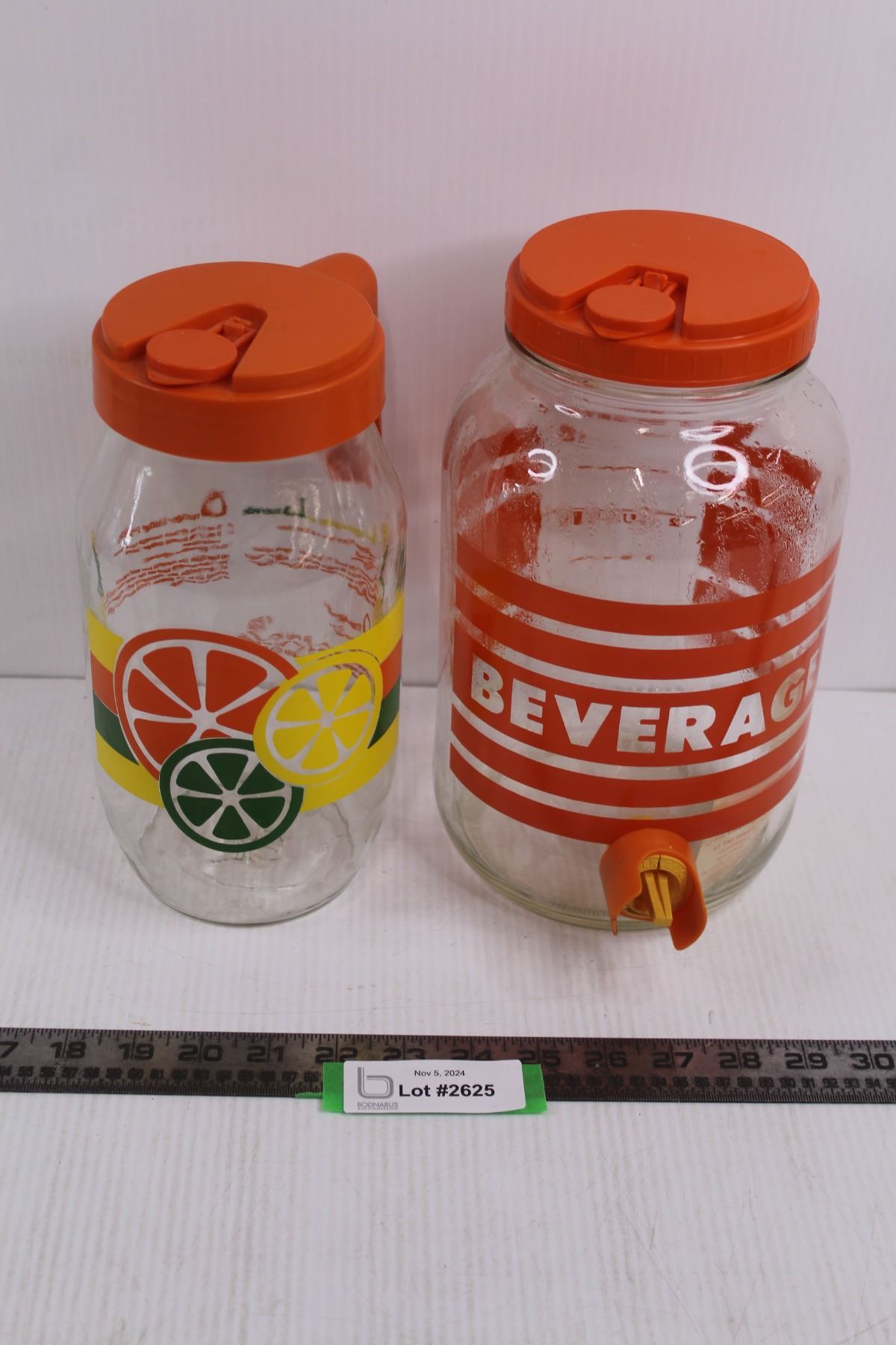 Round Glass Drink Dispenser w/Lid 10.5"x6.5" & Round Glass Pouring Jar w/Lid 10"x5"