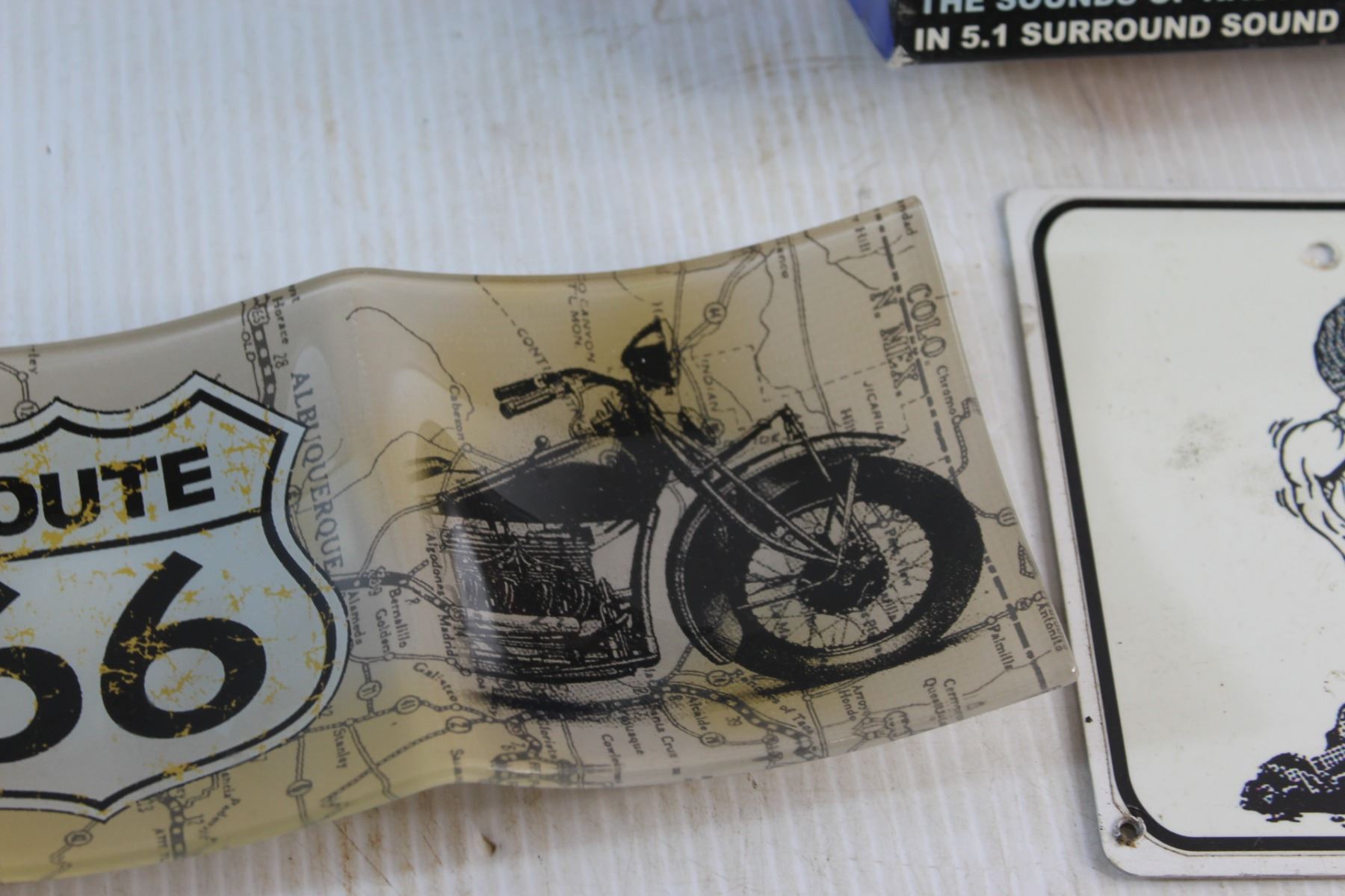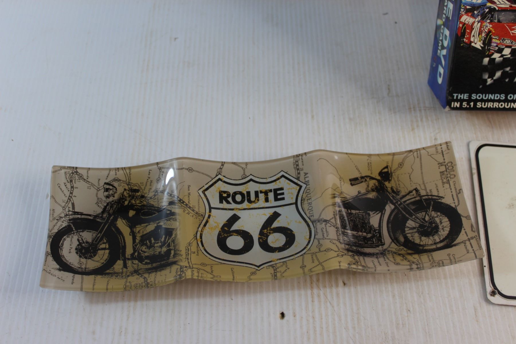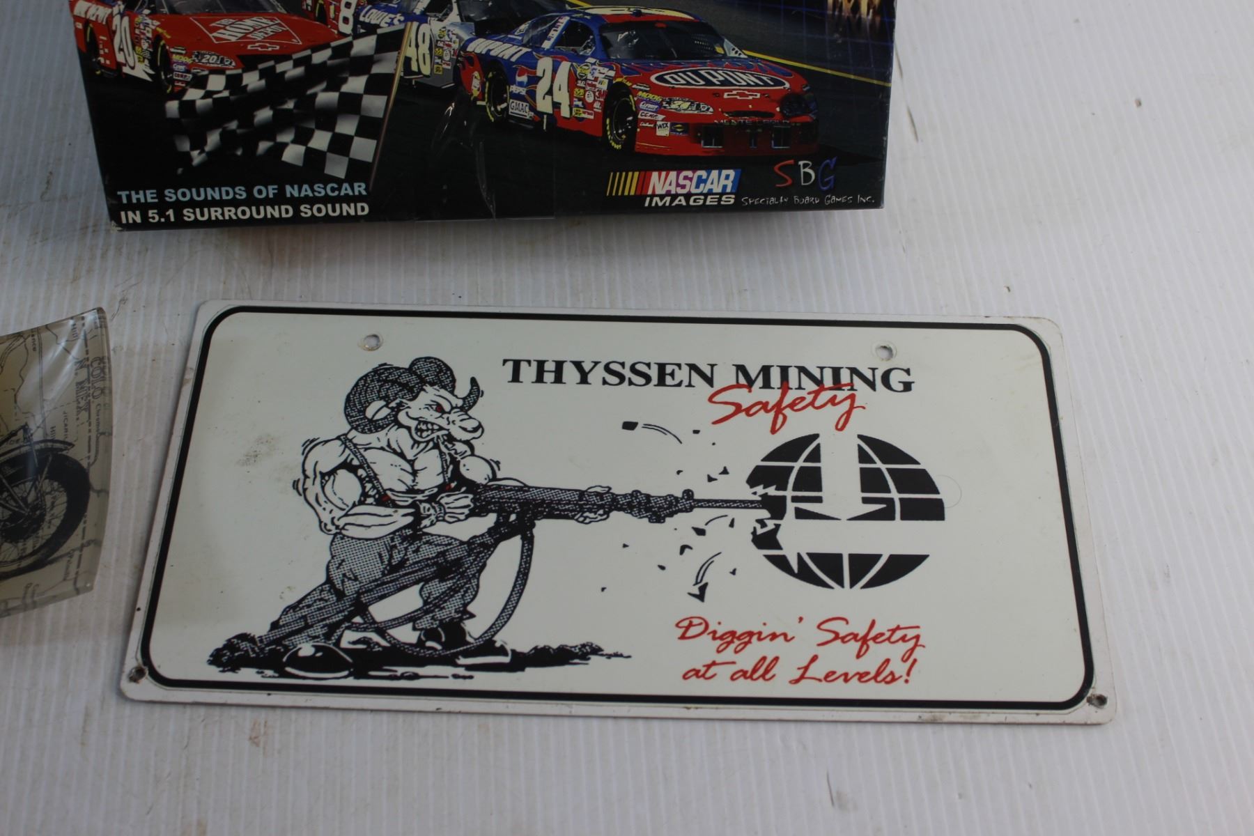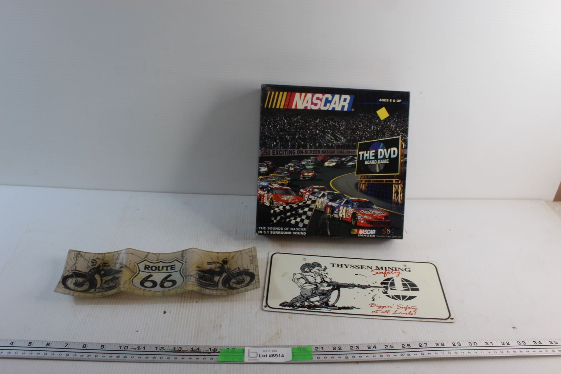 Route 66 Section Glass Tray, Thyssen Mining Front Car Plate and The DVD NASCAR Board Game