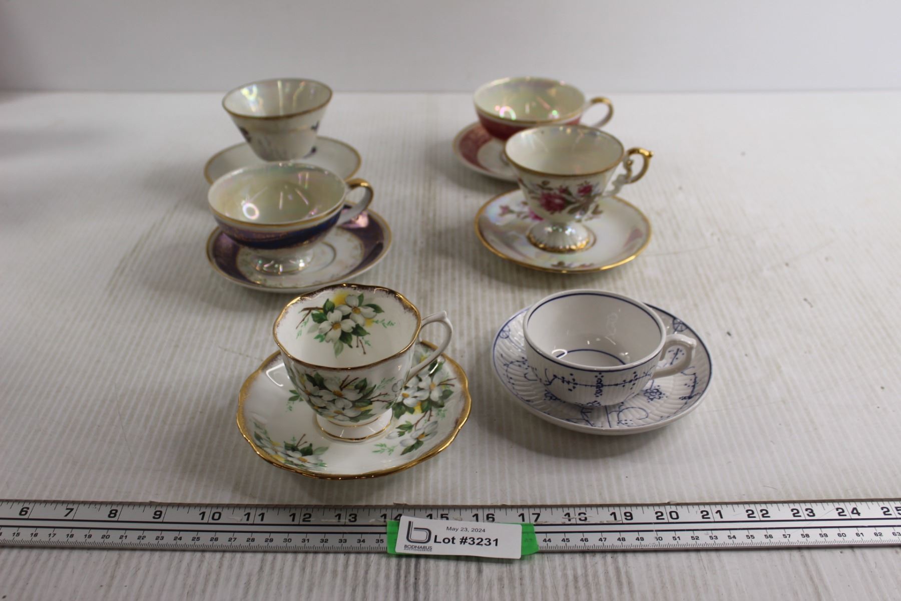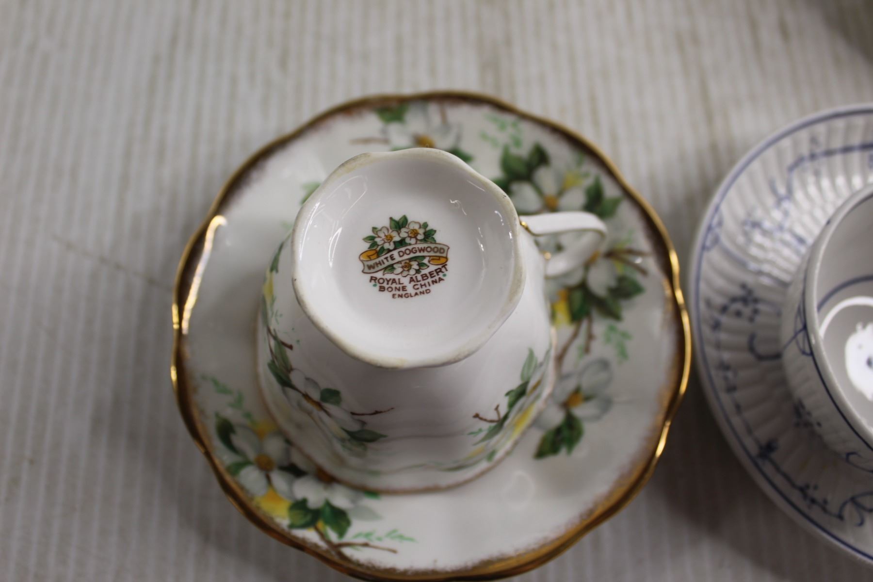 Royal Albert White Dogwood Teacup and Saucer, (5) Unbranded Teacups and Saucers