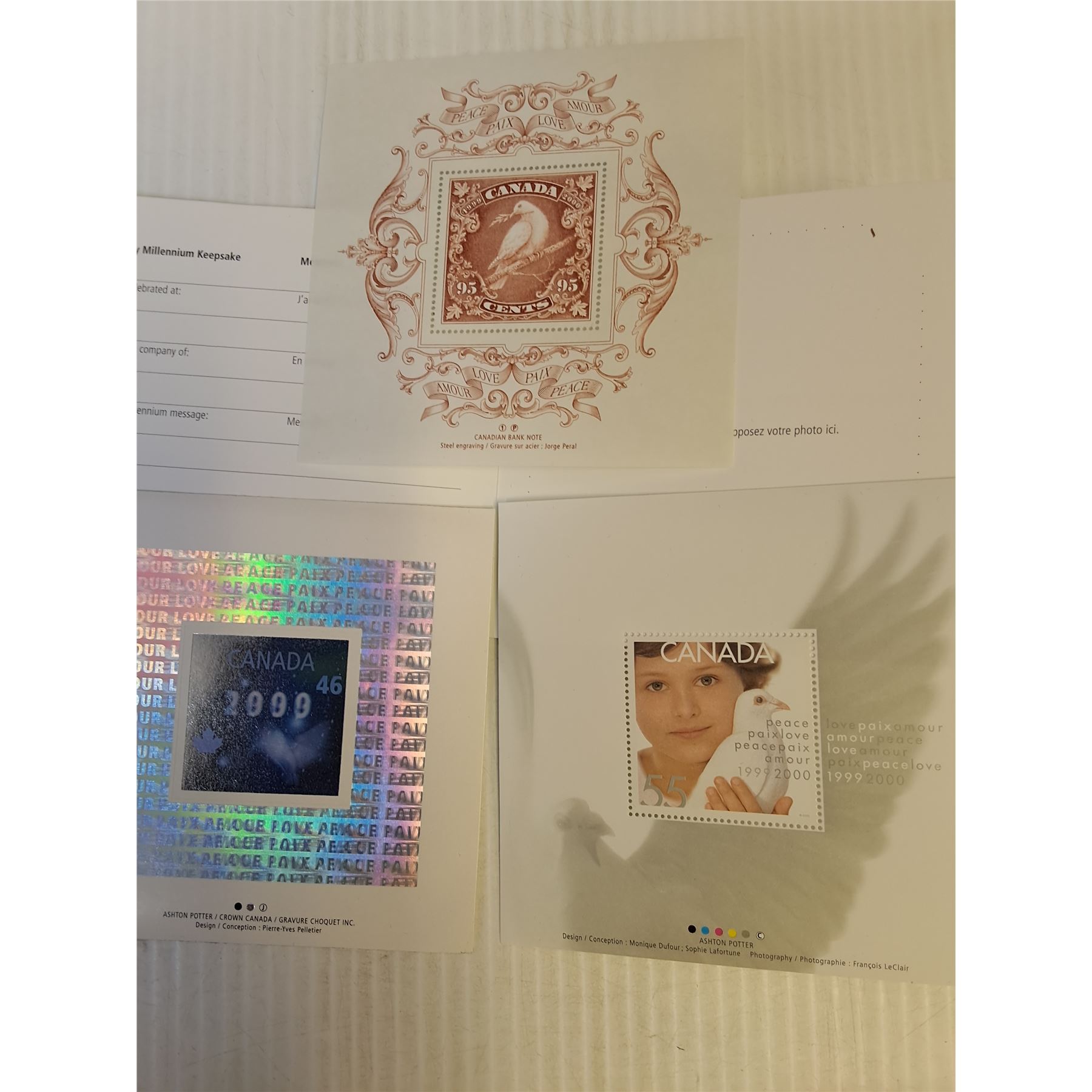 Royal Canadian Mint Millennium Quarter Coin in Colllectors Box & Stamp Collection